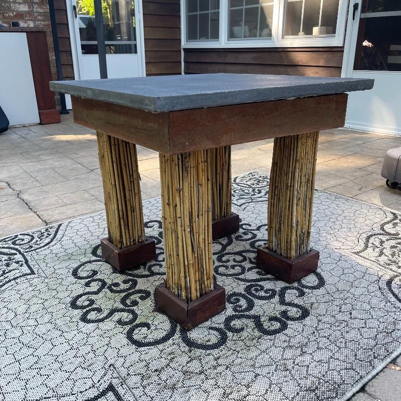 One-Of-A-Kind Blue Stone Topped Outdoor Table
