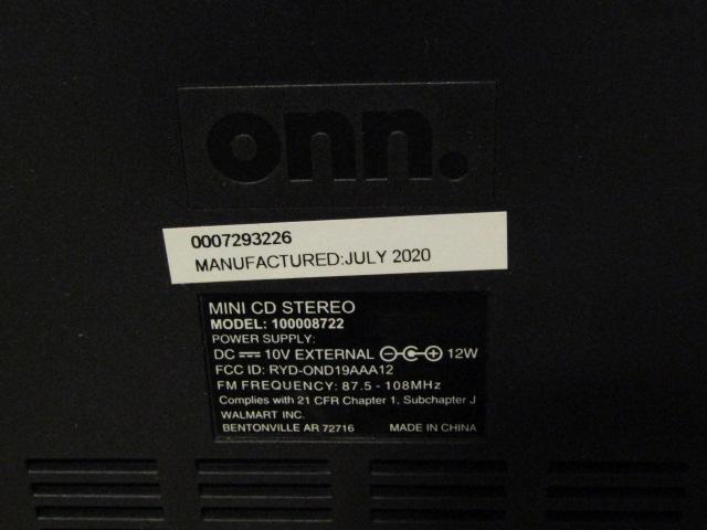 Onn AM/FM/CD with BlueTooth. Unit powers on and works.