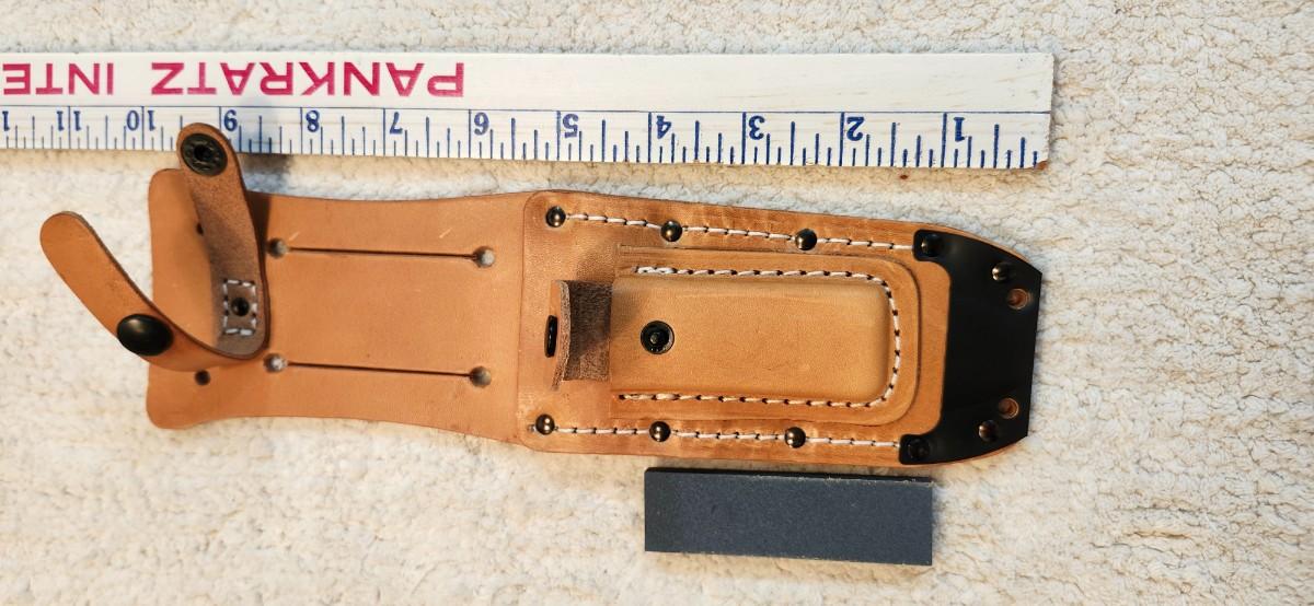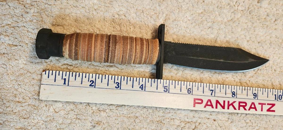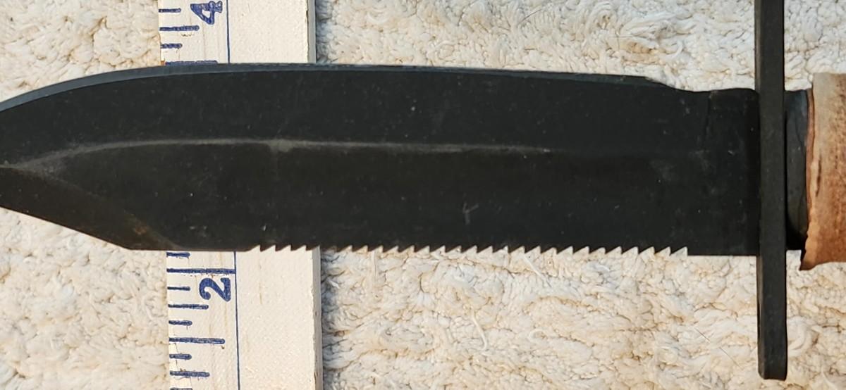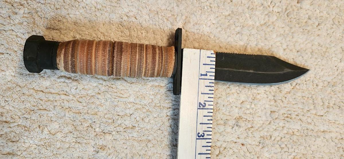 Ontario Knife Company 499 Air Force Survival Knife 5" Sawback Blade with False Top Edge and Blood Grooves, Natural Leather Handle and Sheath Black Please see pictures for size and condition
