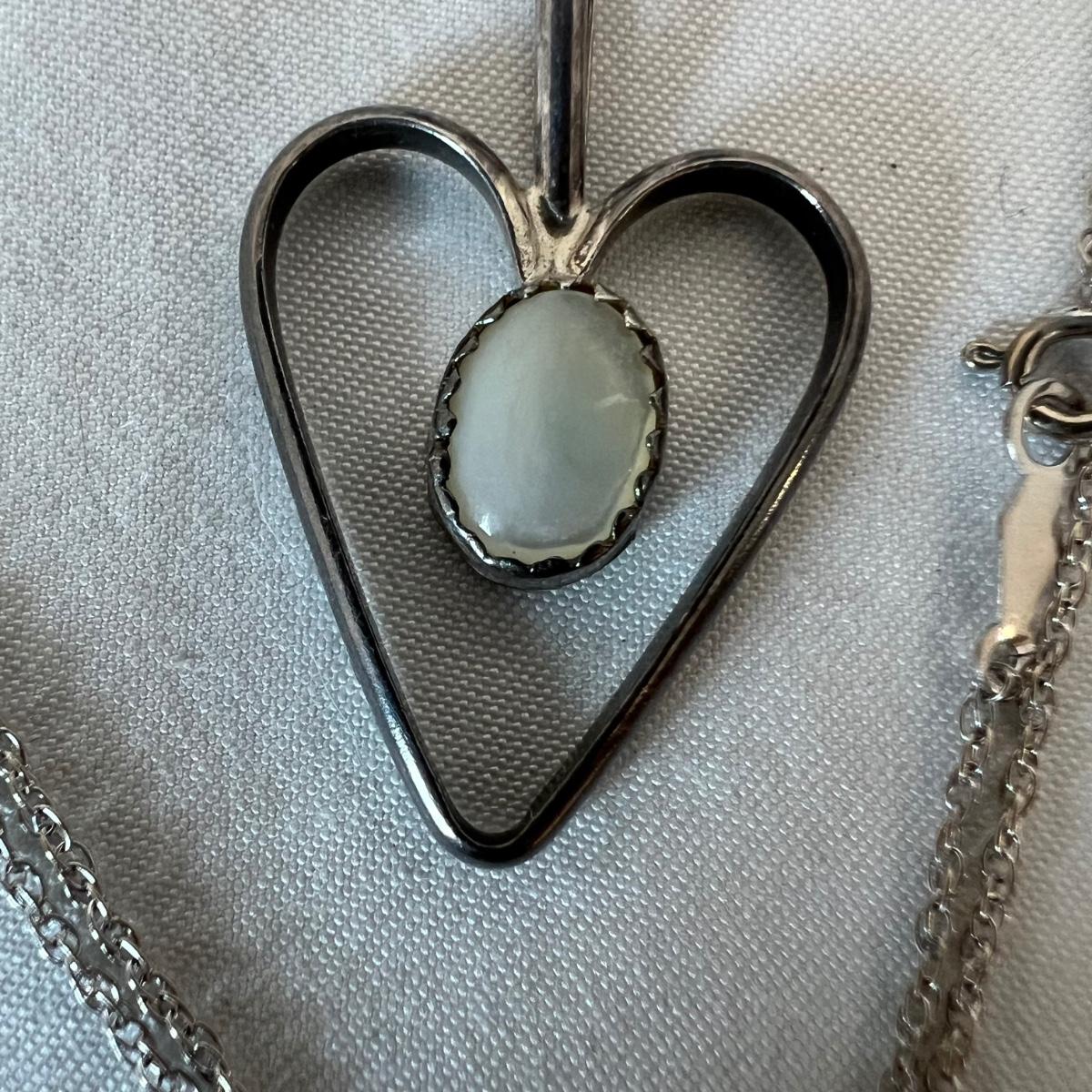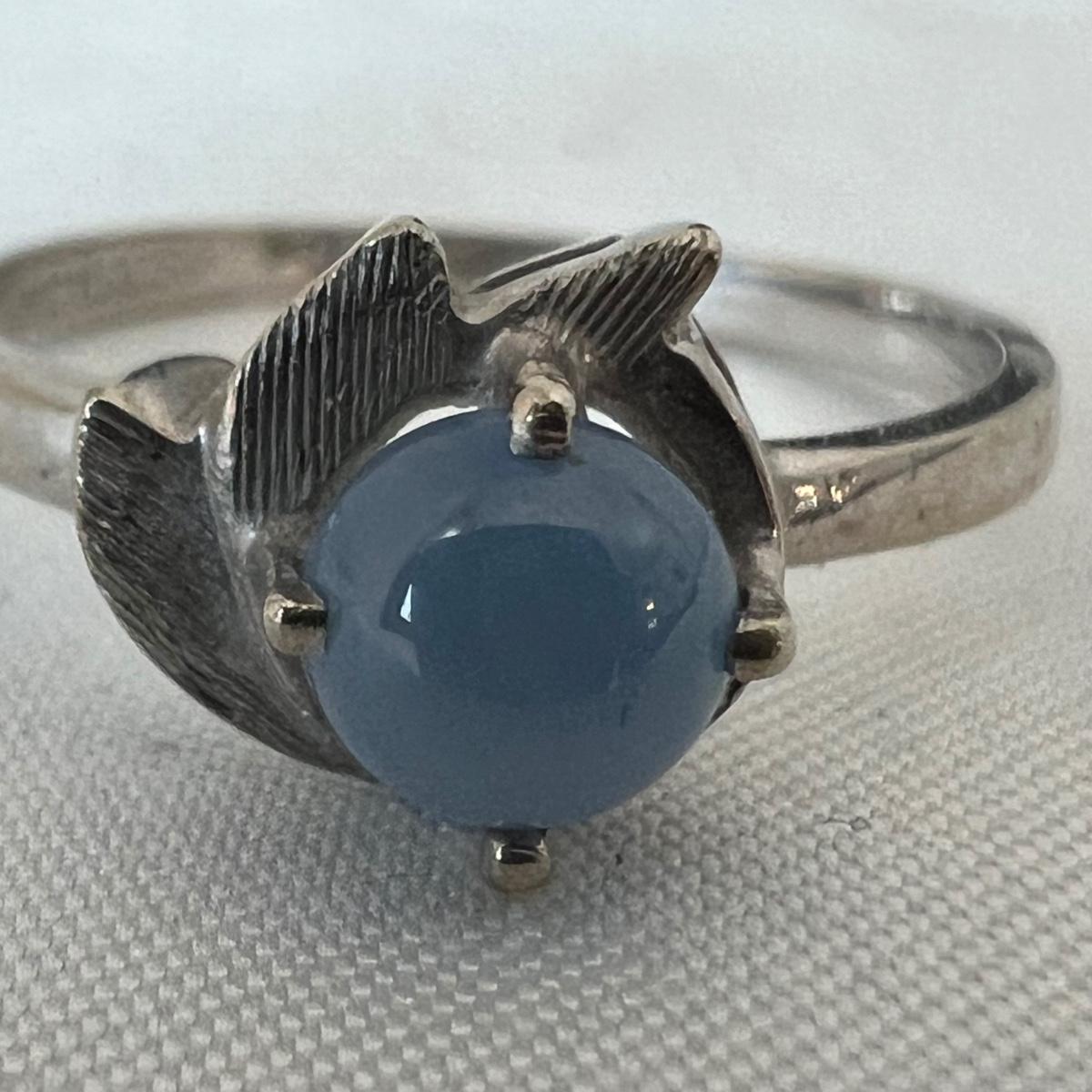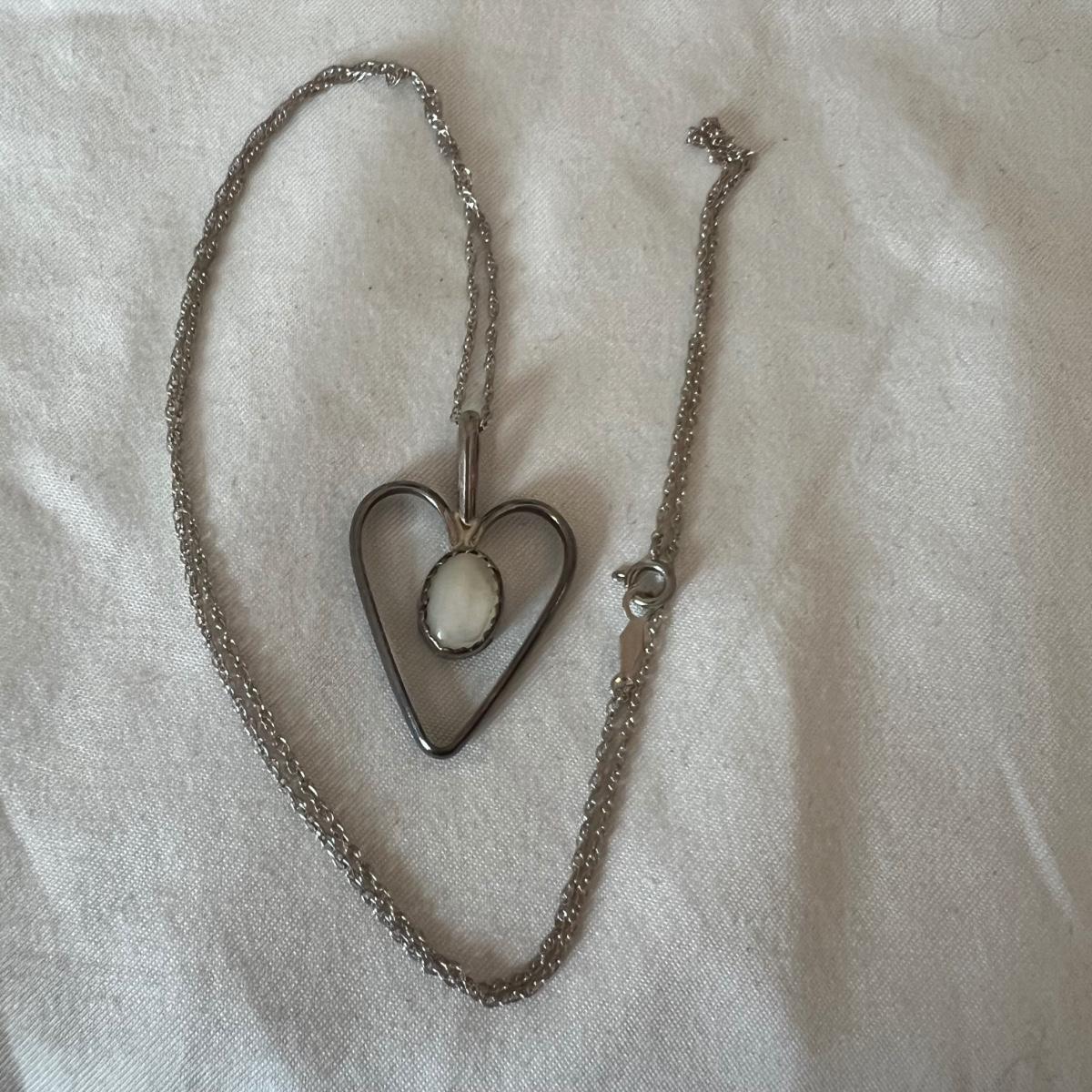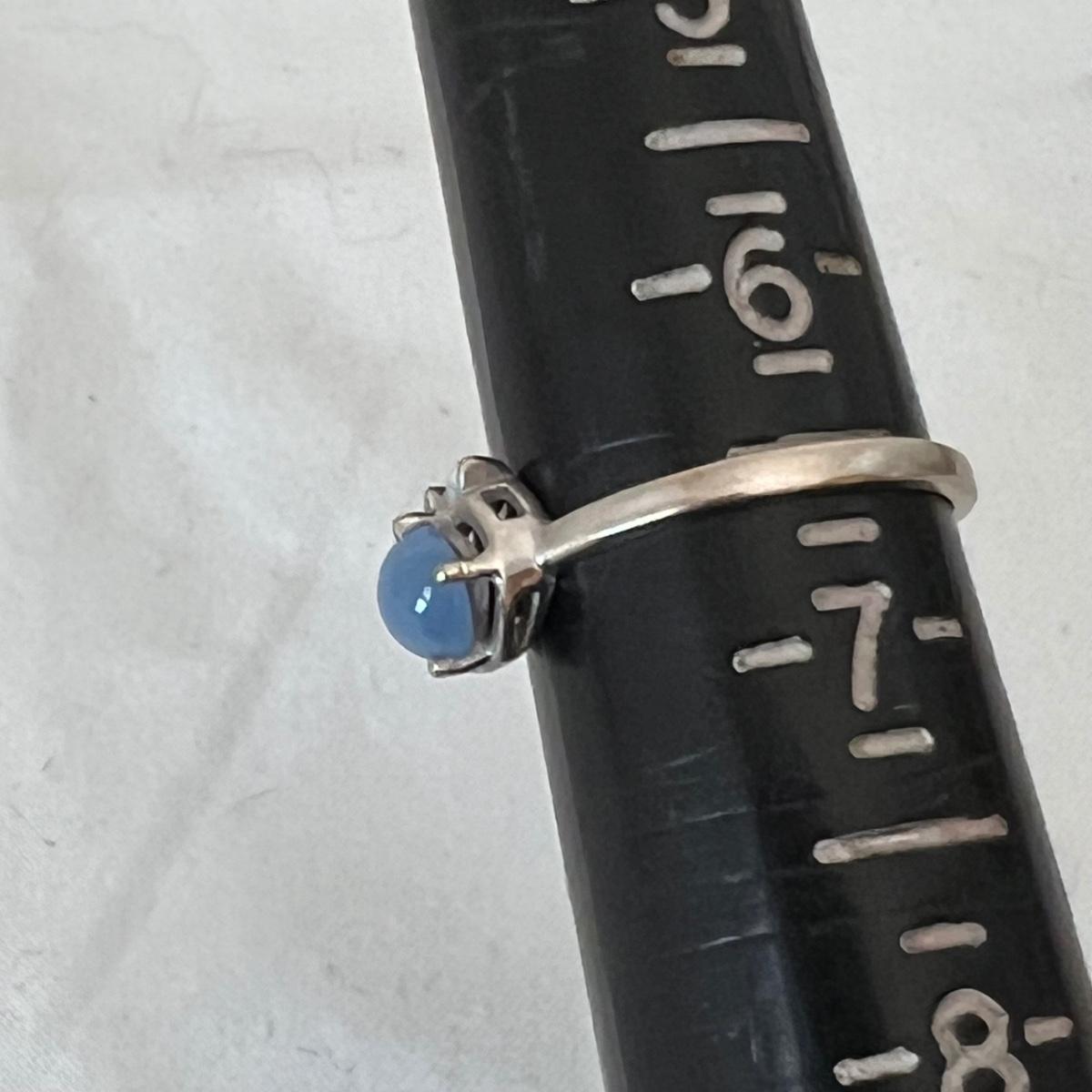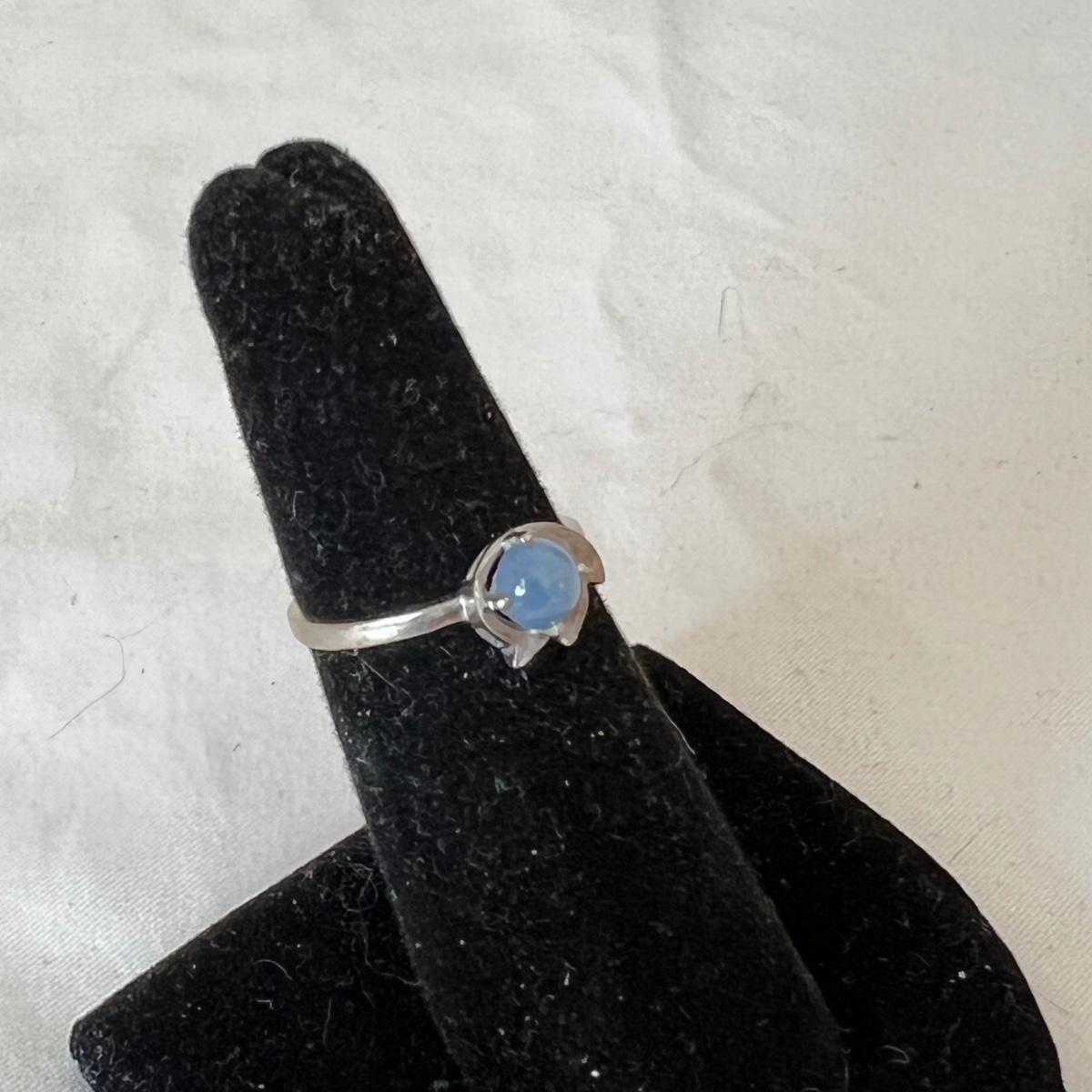 Two rings and a necklace each feature a stone. The large ring has what appears to be a black onyx stone and the other ring has a pretty periwinkle colored stone, the necklace has a pearly white stone; note the pendant has no mark but the chain it is on, is marked 14K as are the two rings. Necklace chain is 18” long. No stones were tested/verified.