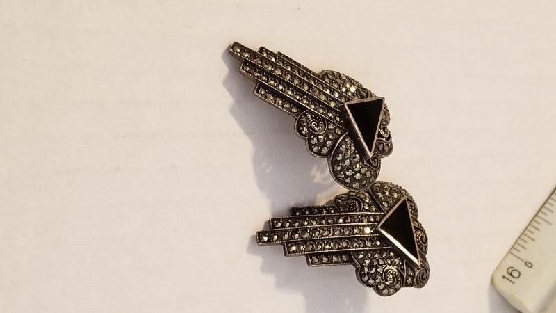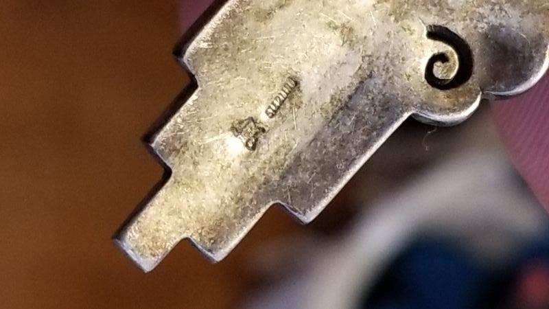 Marked sterling, pierced earings. Unsure what the other marking means, perhaps designer mark? These are large, have weight to them, and uniquely stunning. A true show stopper!
