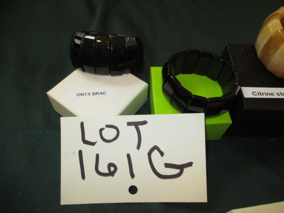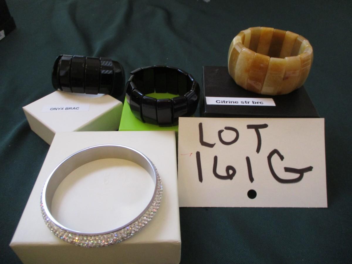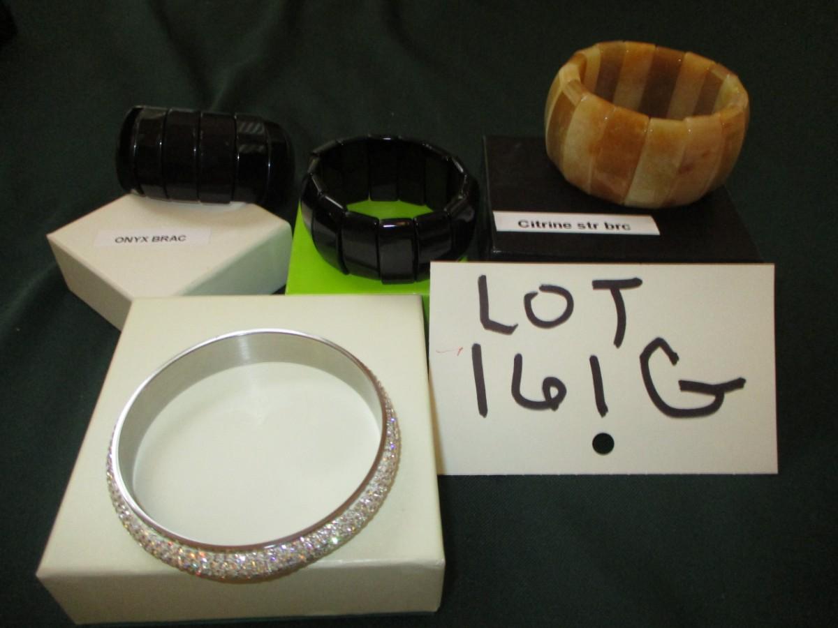 2 Black Onyx Stretch Bracelets, 1 citrine Stretch Bracelets. 1 Stainless Steel bracelet with gemstones