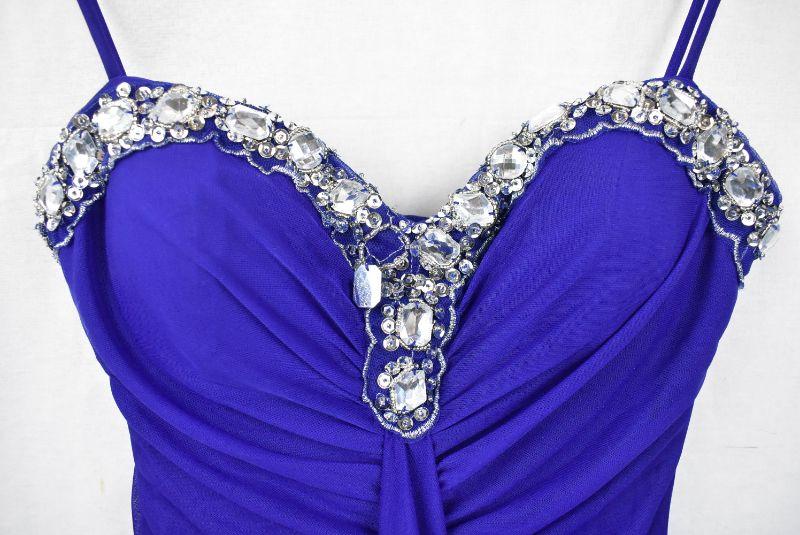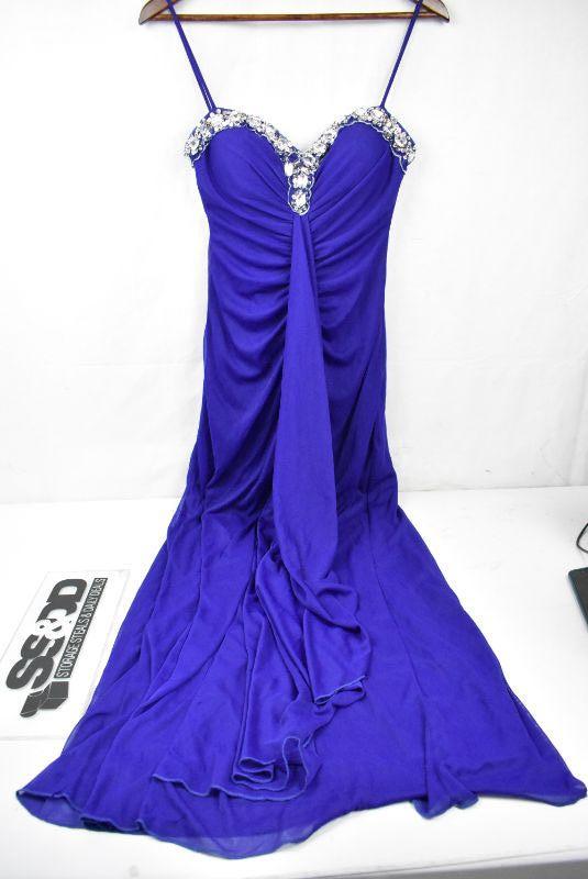Onyx Nite Formal Dress, Blue/Purple w/ Crystals Neckline, 1 needs repair, Size 4