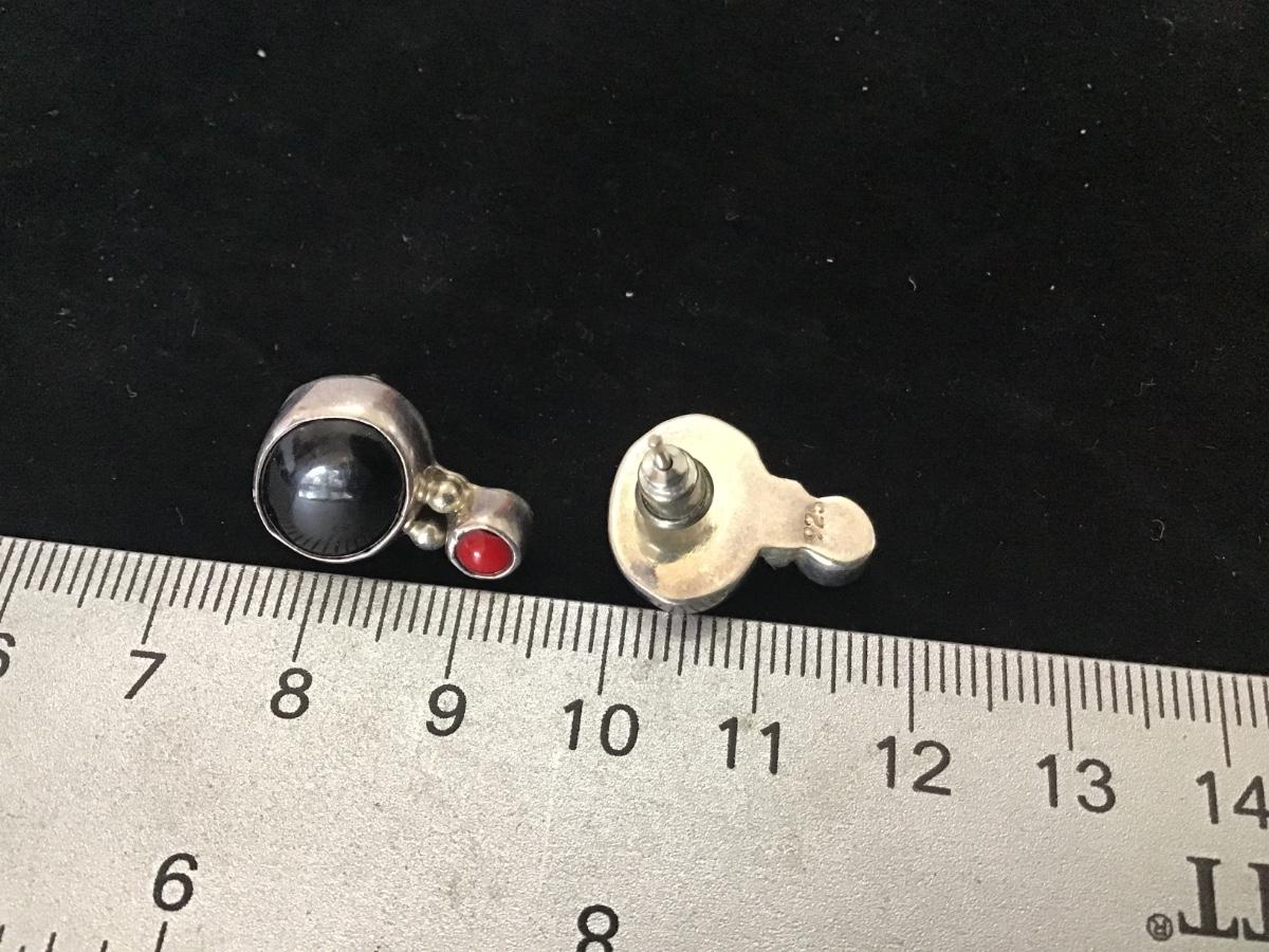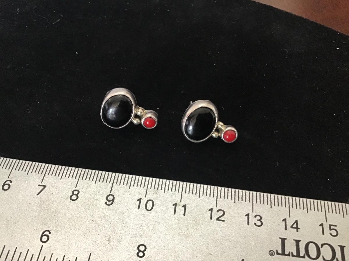 Onyx Red Coral 925 Earrings Vintage