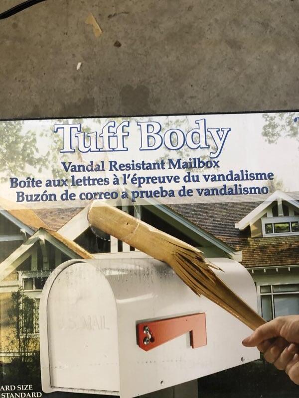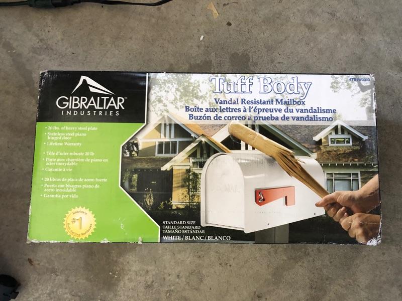 NEW IN BOX. Tuff Body vandal resistant mailbox and post set. Made by Gibraltar Industries. Mailbox is white.