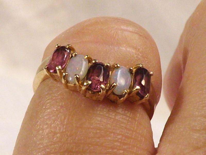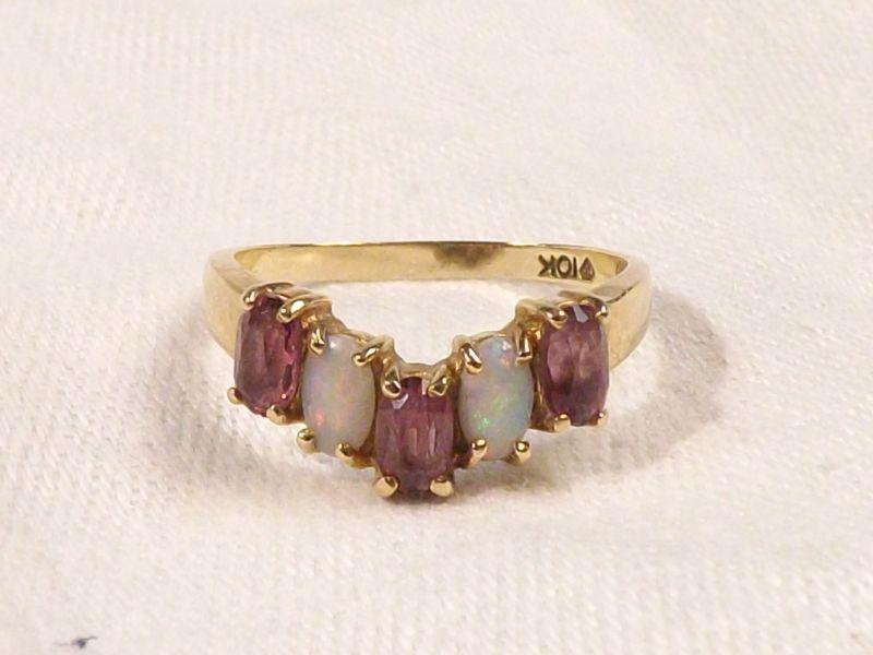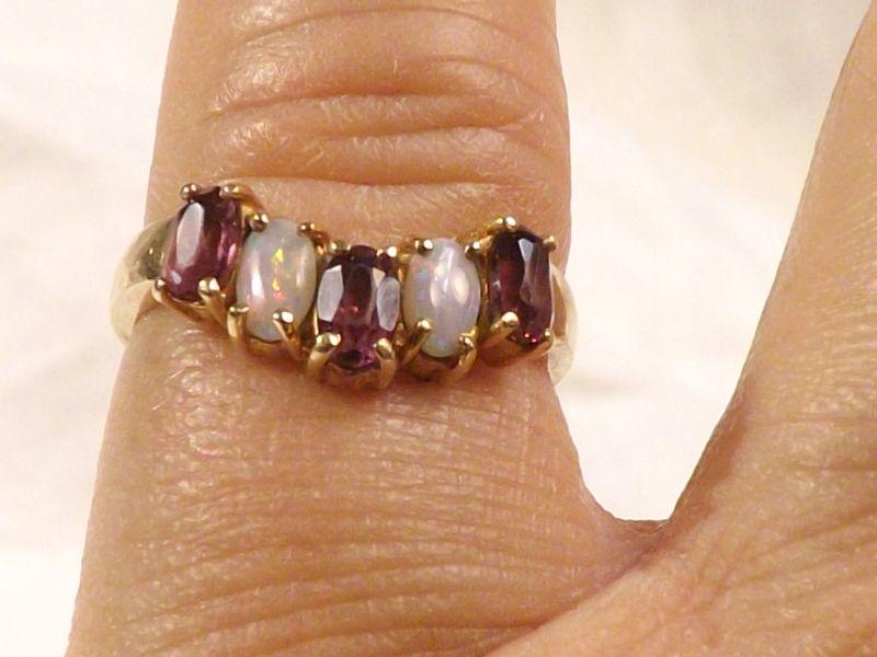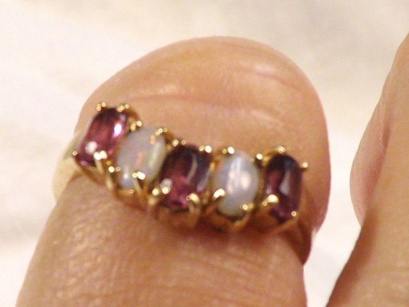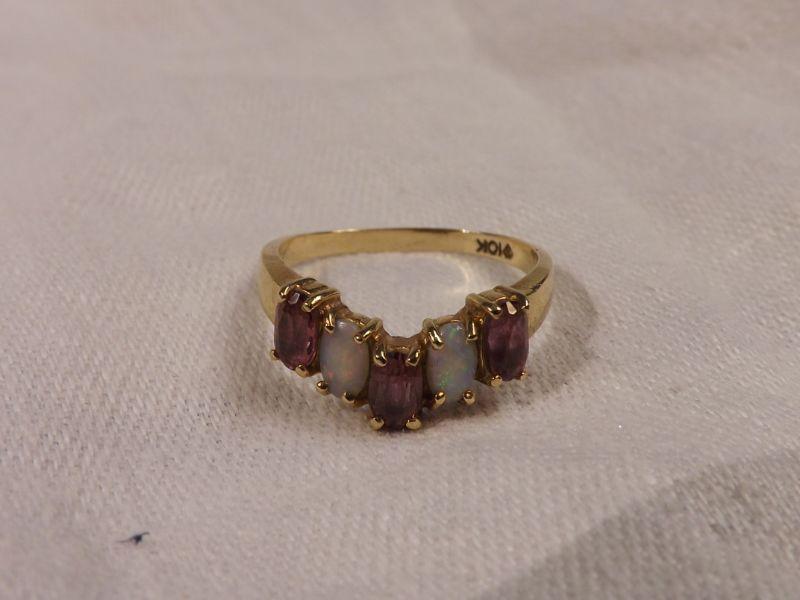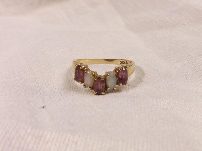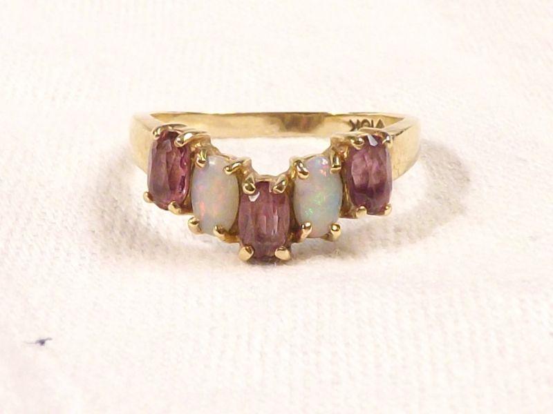 10k Yellow gold vintage ring with 3 amethysts and 2 opals. **Please read Terms and Conditions before placing a bid. Pick up is Wednesday, September 25 from 4pm to 7pm and Saturday, September 28 from 9am to 1pm in Williamstown, NJ. All sales are final. All sales are as is, where is. Please review all photos. Any props included in photos are not included in listing. All measurements are approximate.