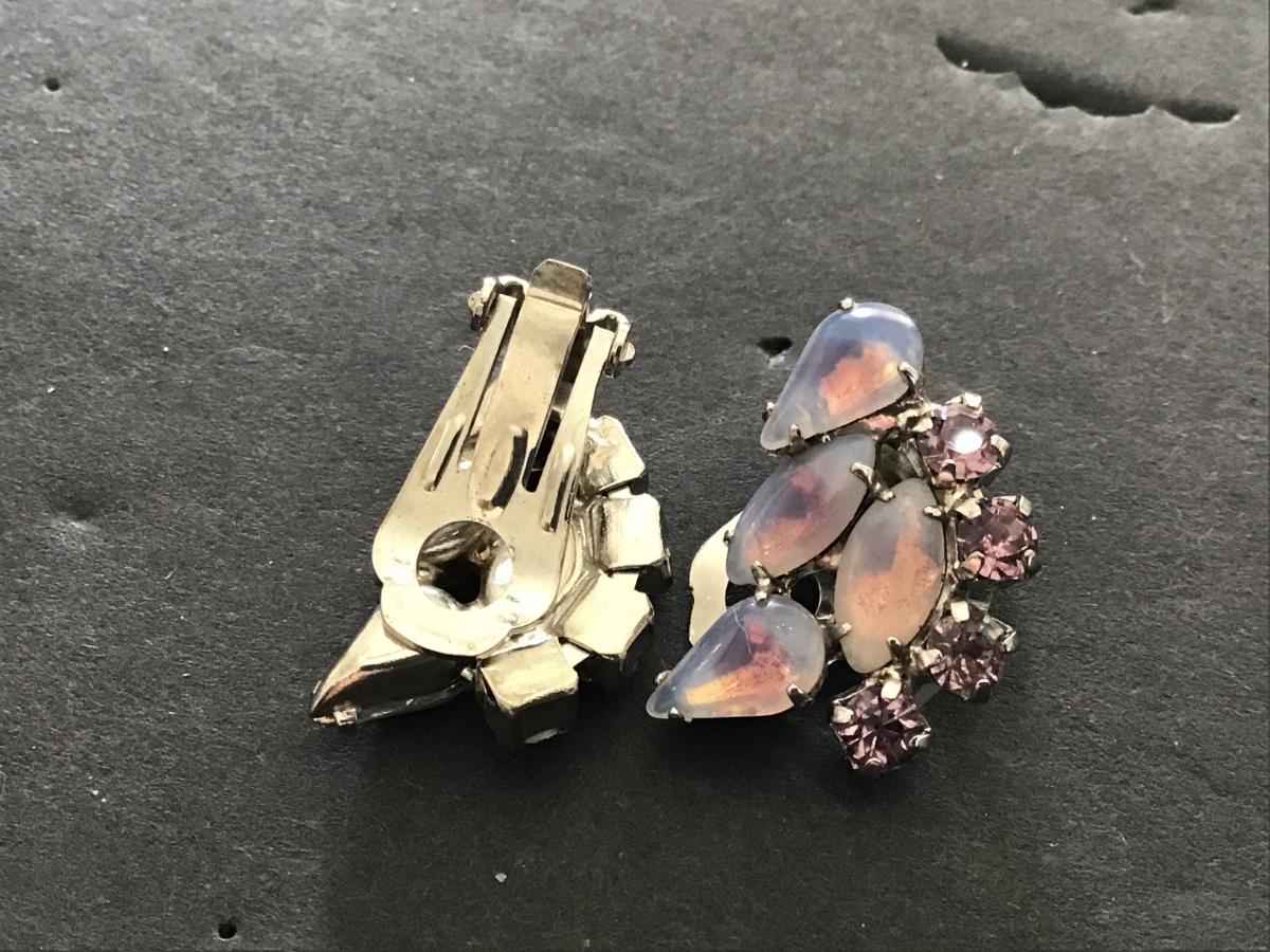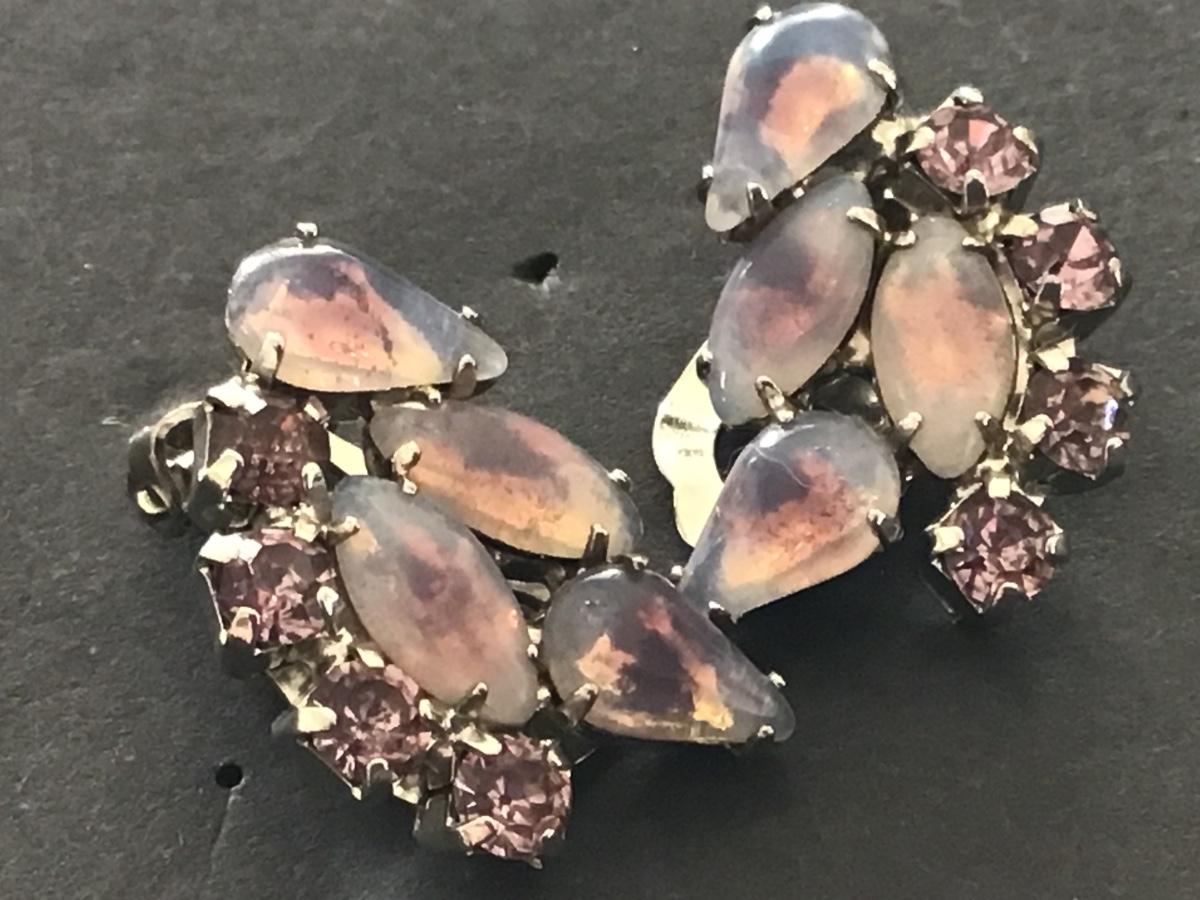 Opal Color Glass / Stone Vintage Clip on Earrings