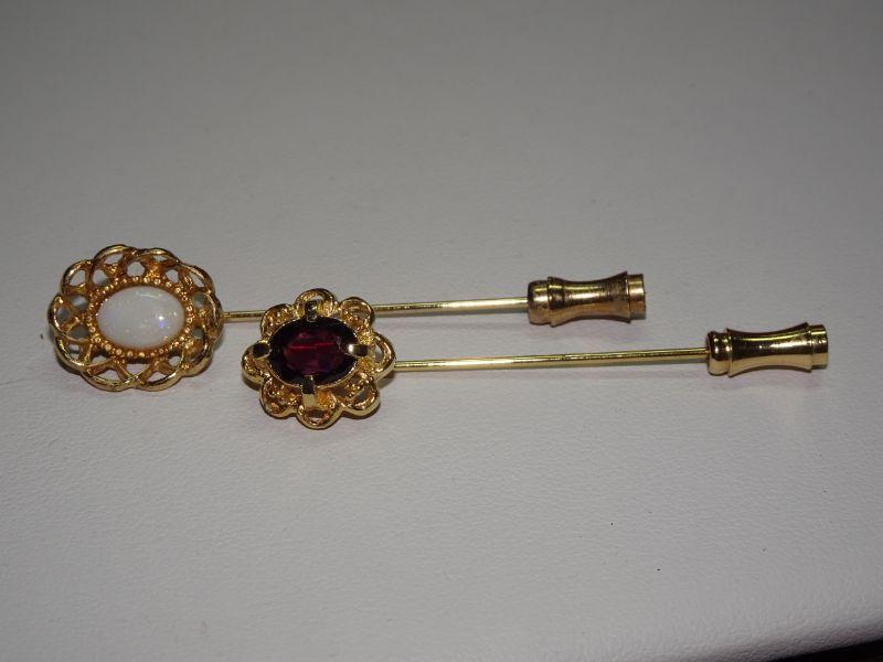 Opal & Red Stone Stick Pins
