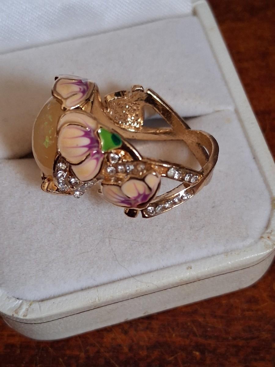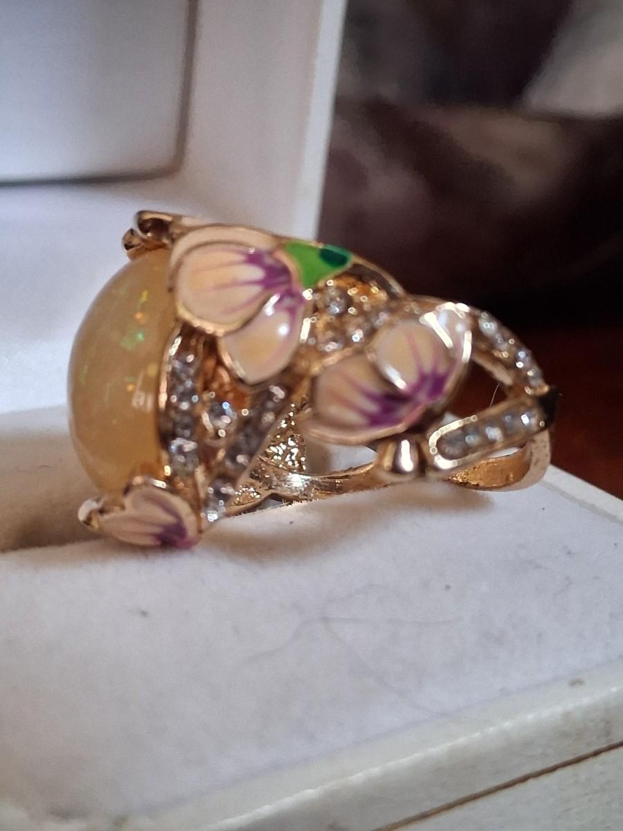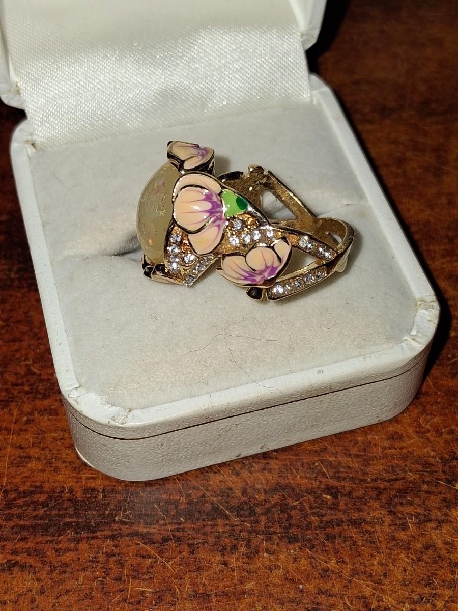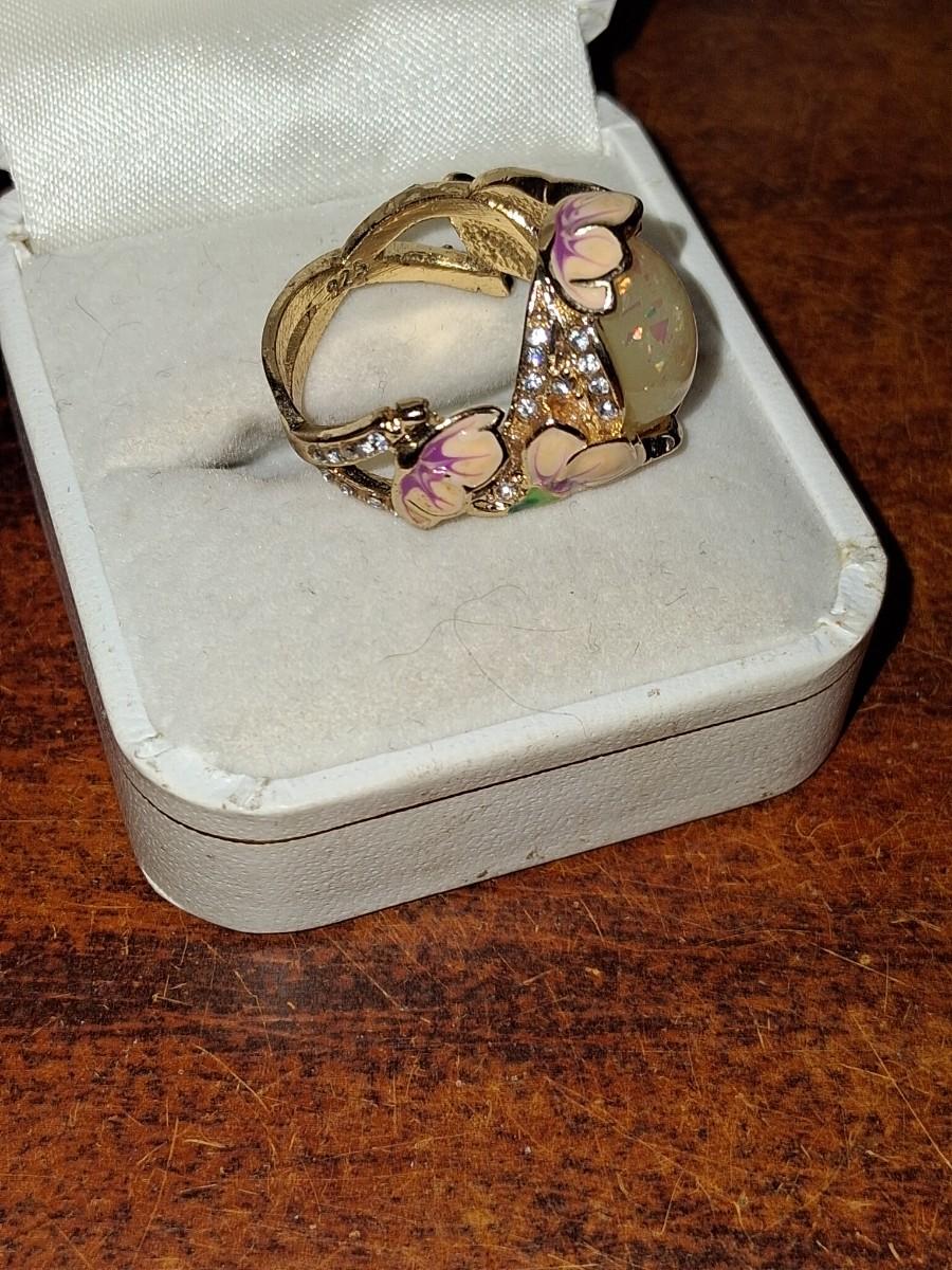 Crystal accents. This ring is statement upon statement. The Flowers wrap around the ring, flow down the shoulders & are pepper with Crystal accents. Size 7 1/2