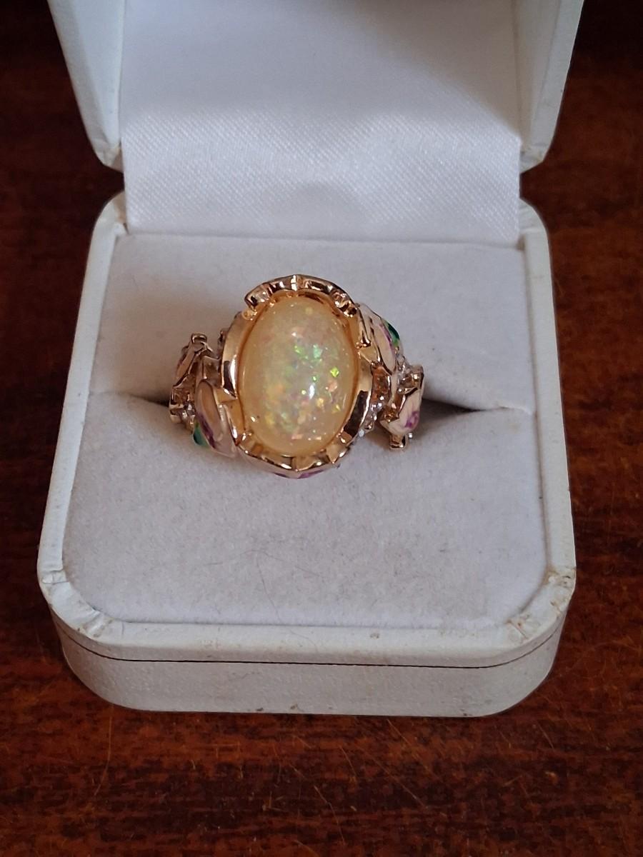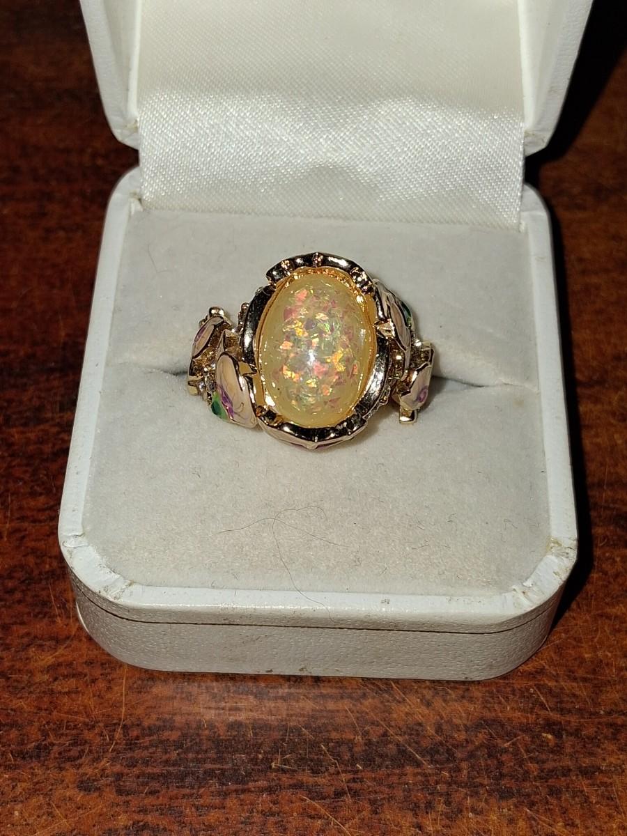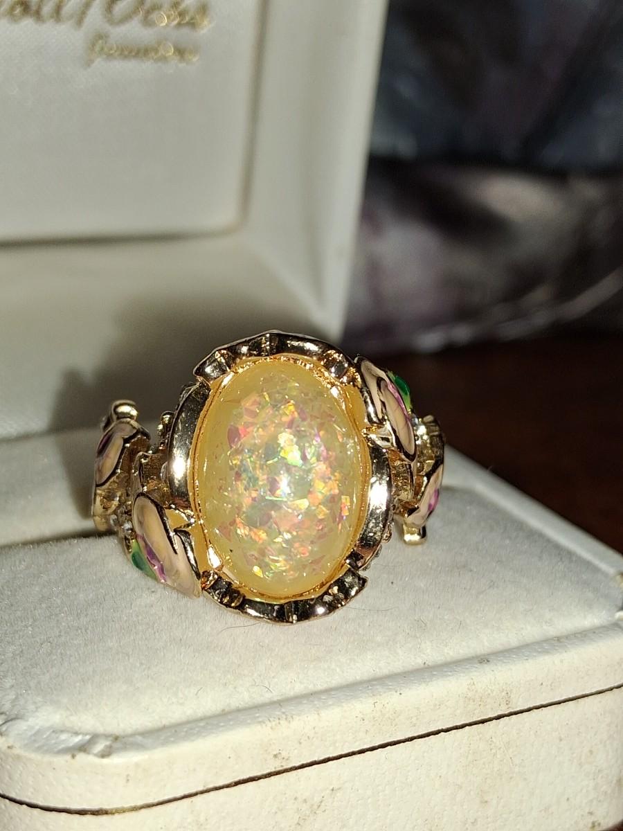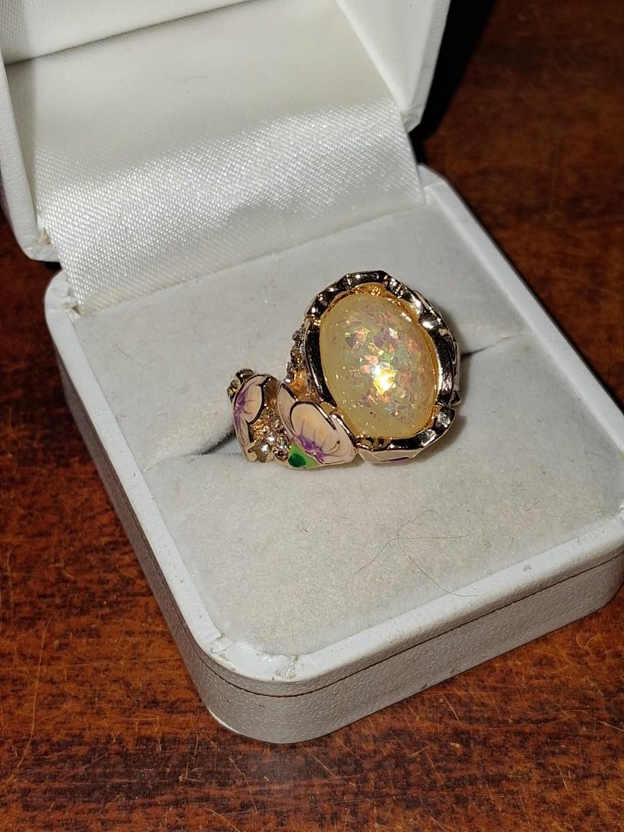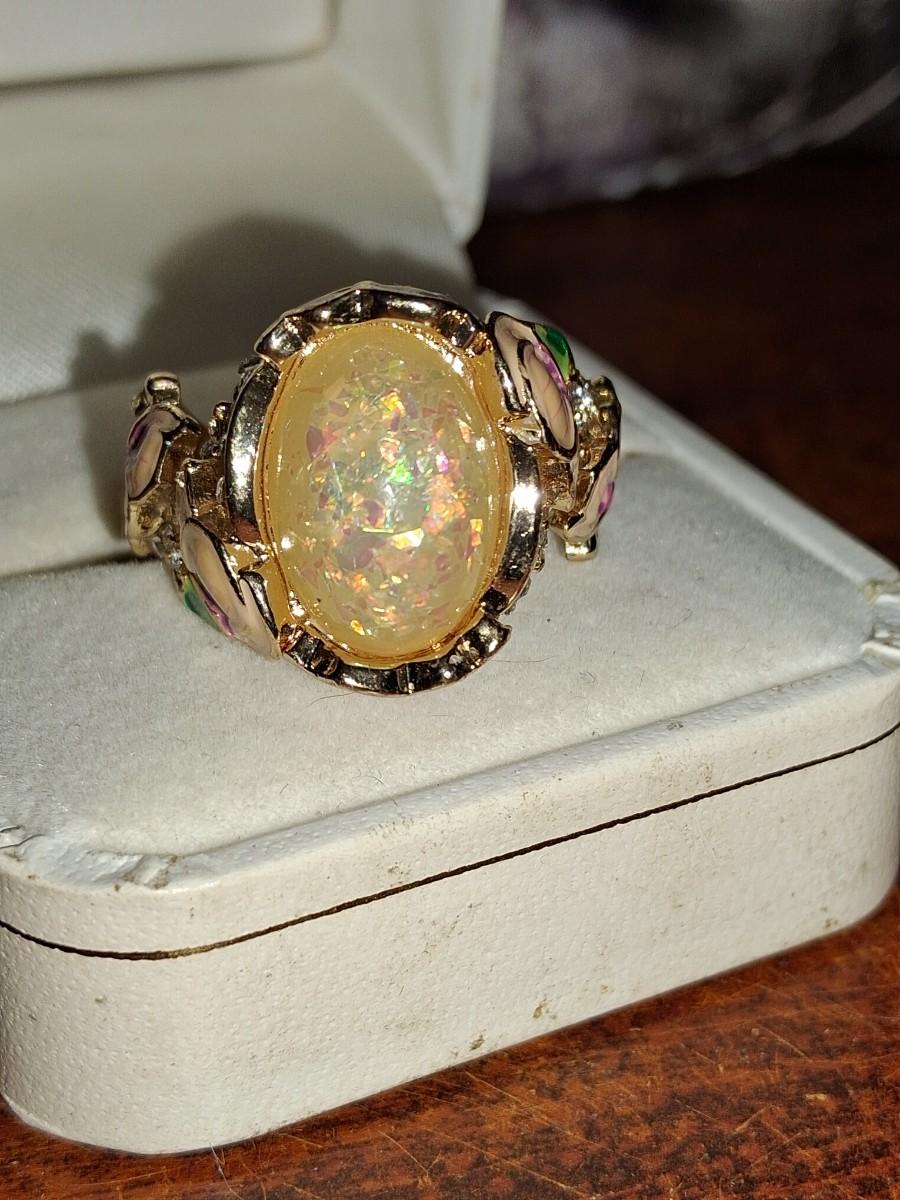 Crystal accents. This ring is statement upon statement. The Flowers wrap around the ring, flow down the shoulders & are pepper with Crystal accents. Size 7 1/2