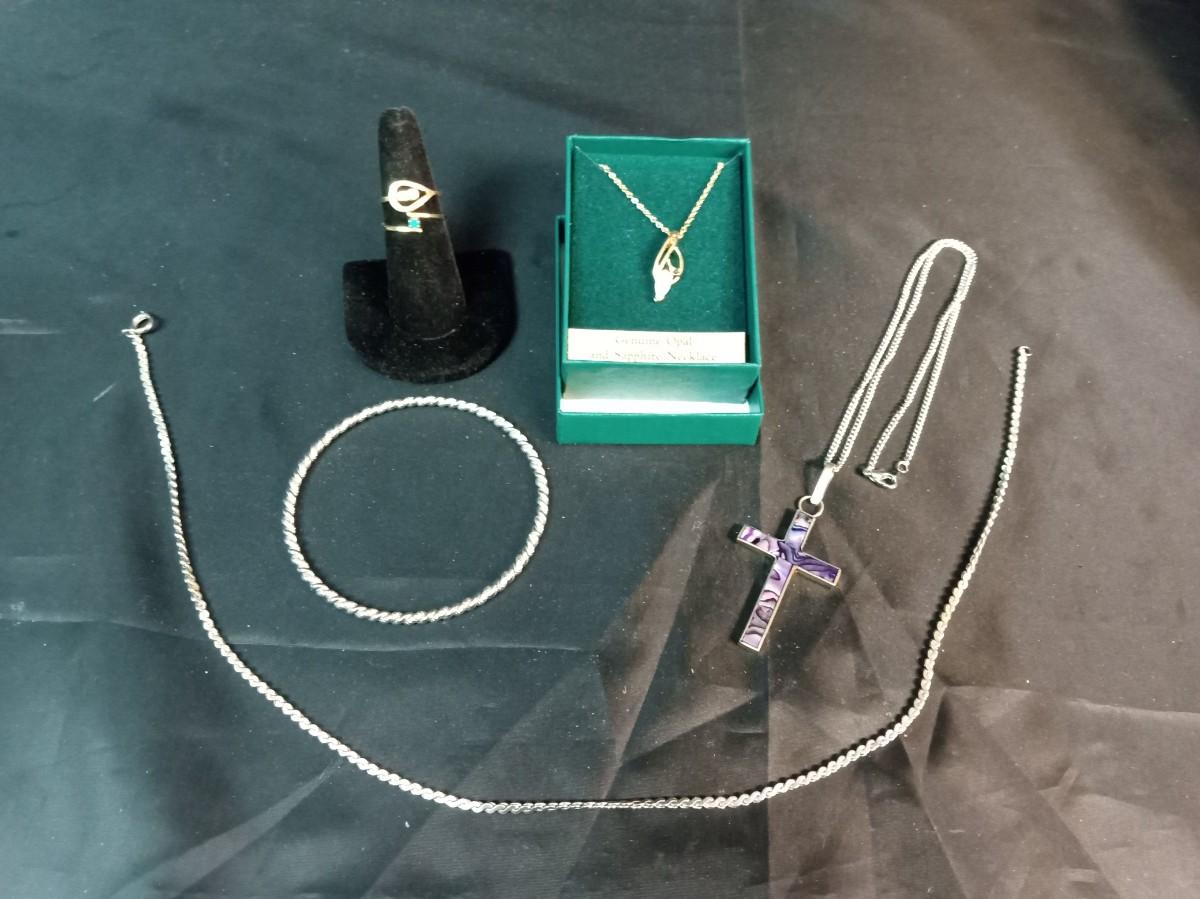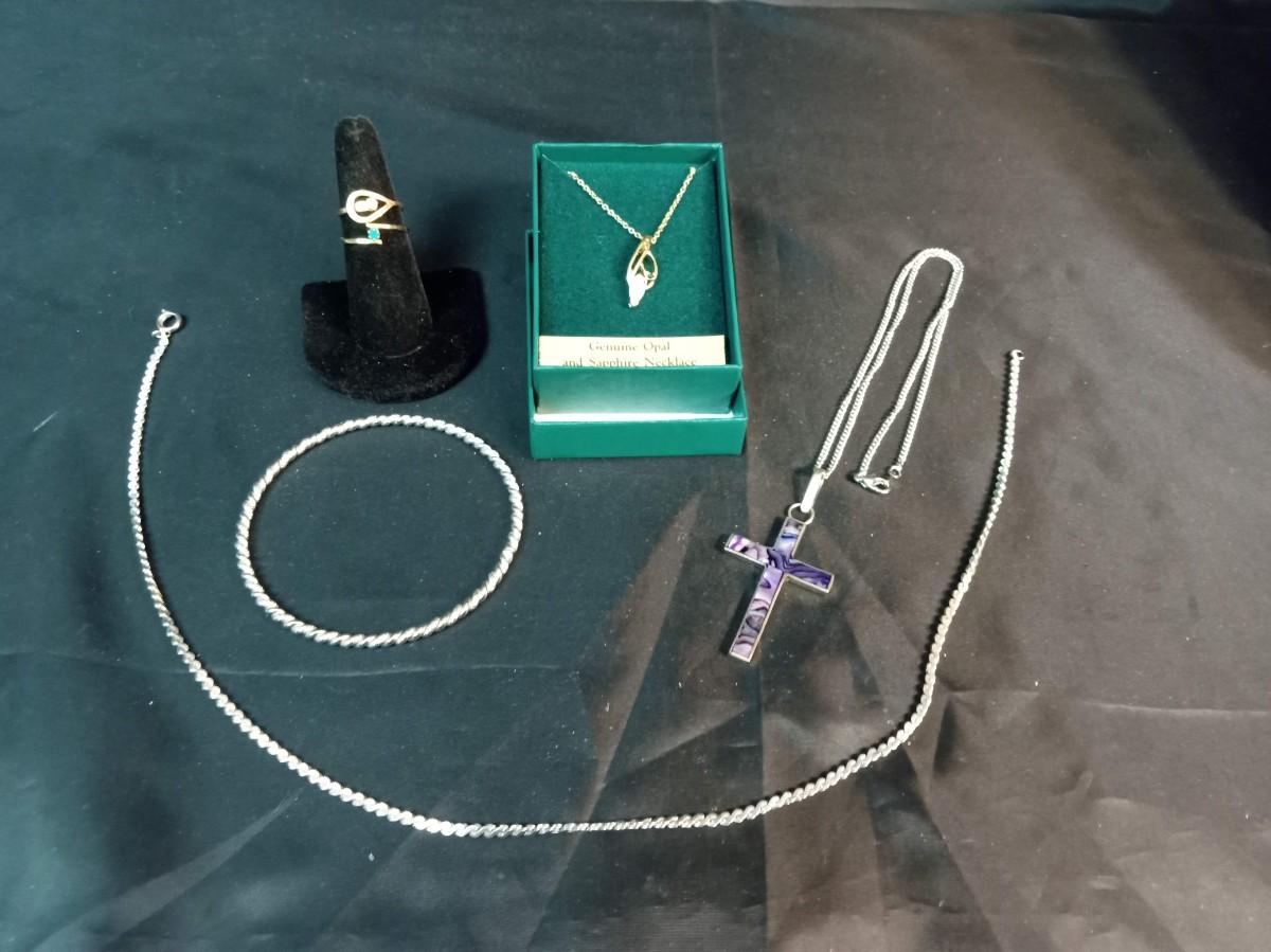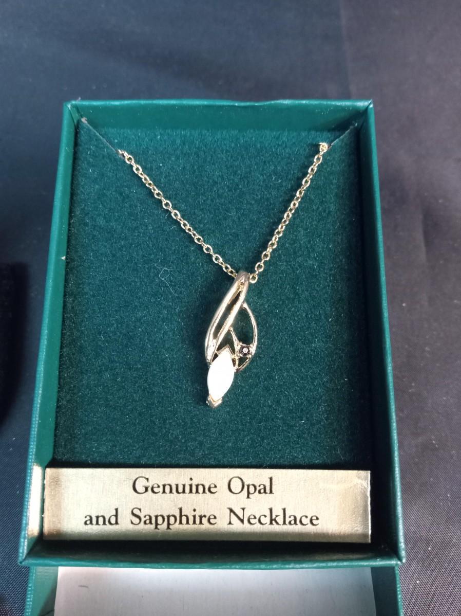 OPAL & SAPPHIRE PENDANT PLUS SOME COSTUME JEWELRY