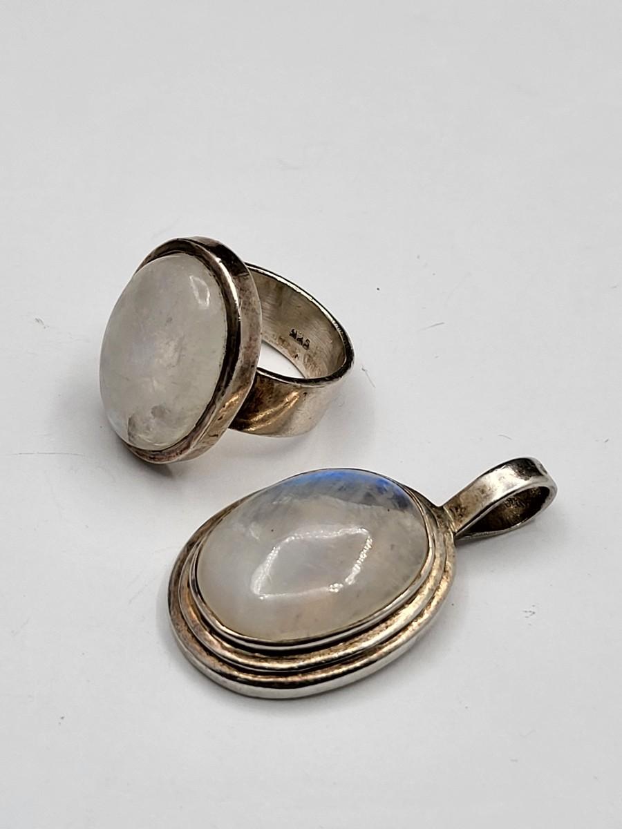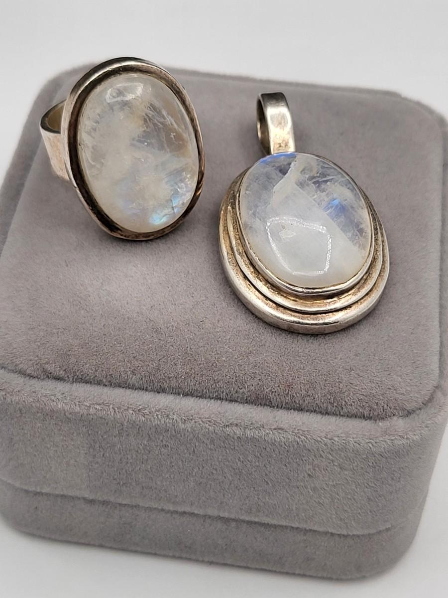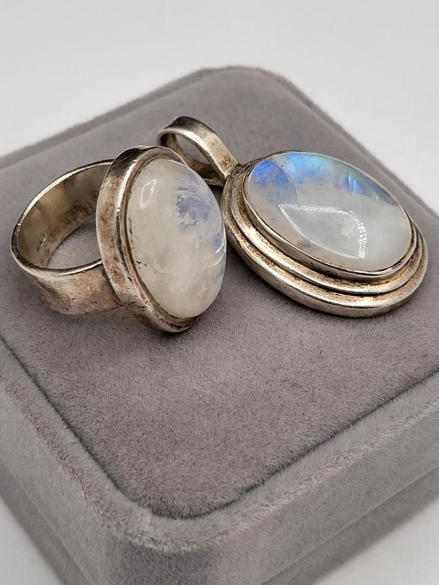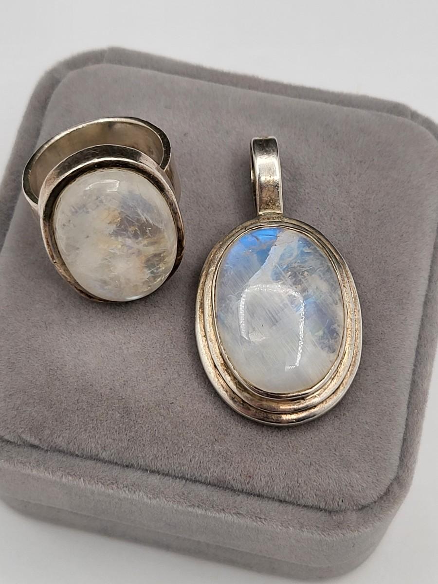 Opalescent Moonstone Ring & Pendant 28.9gr