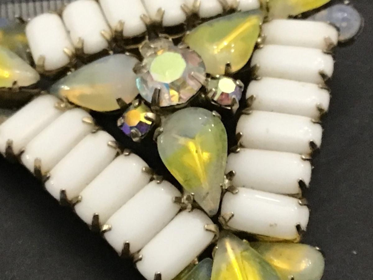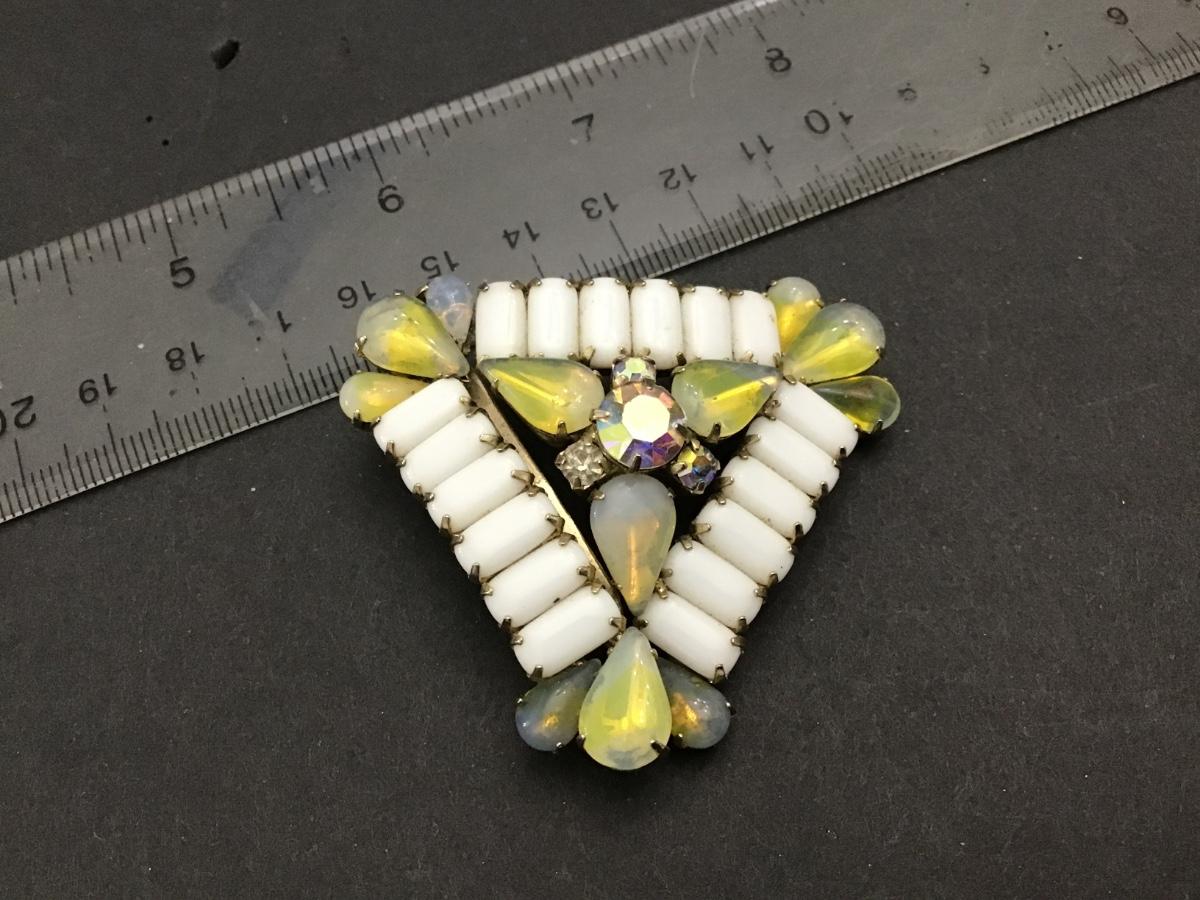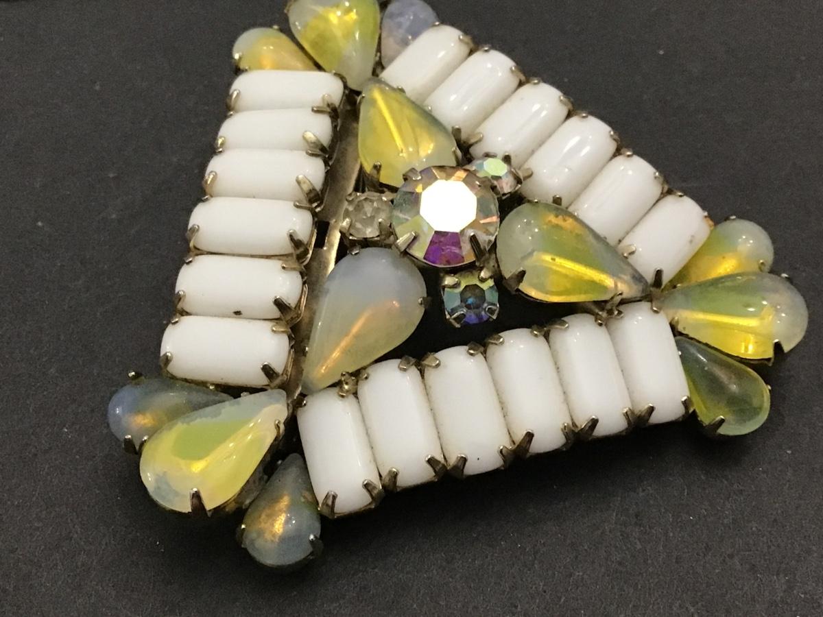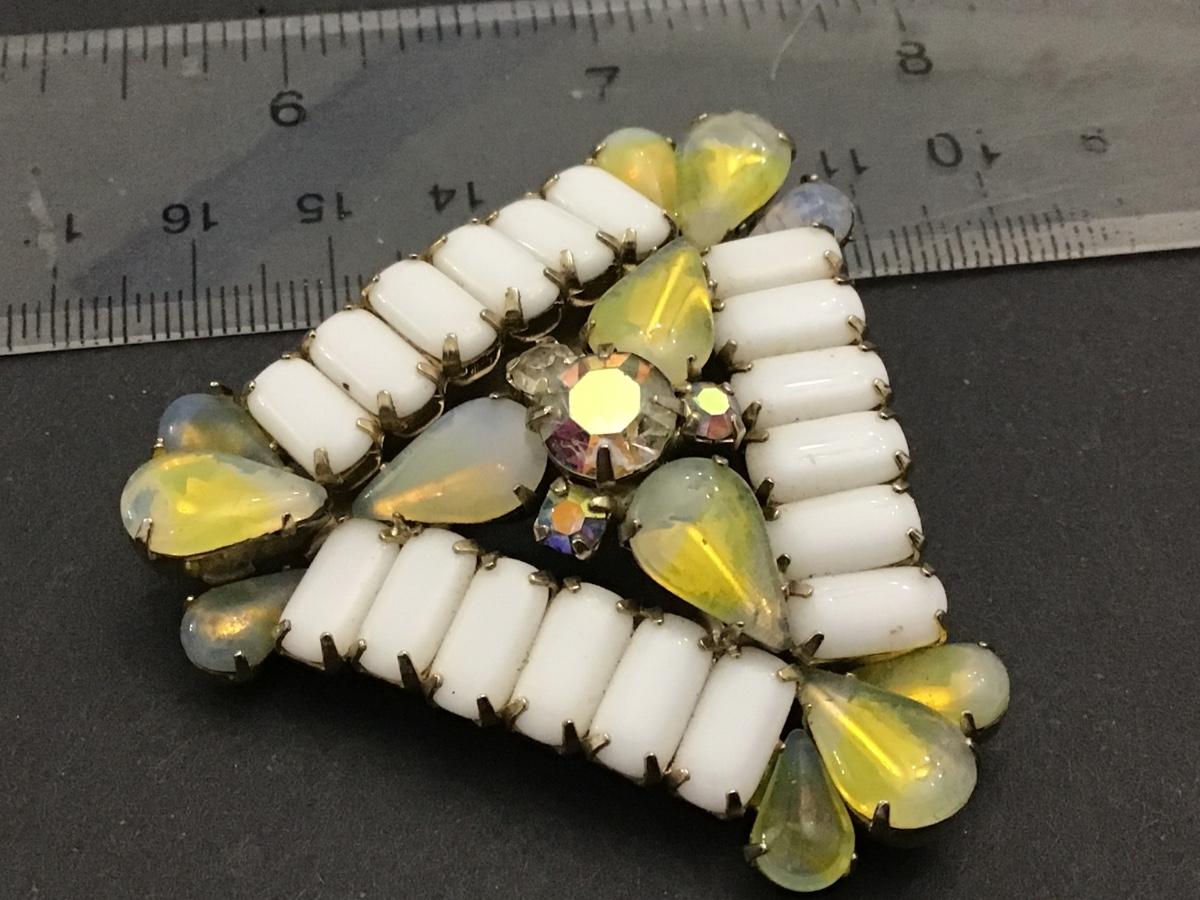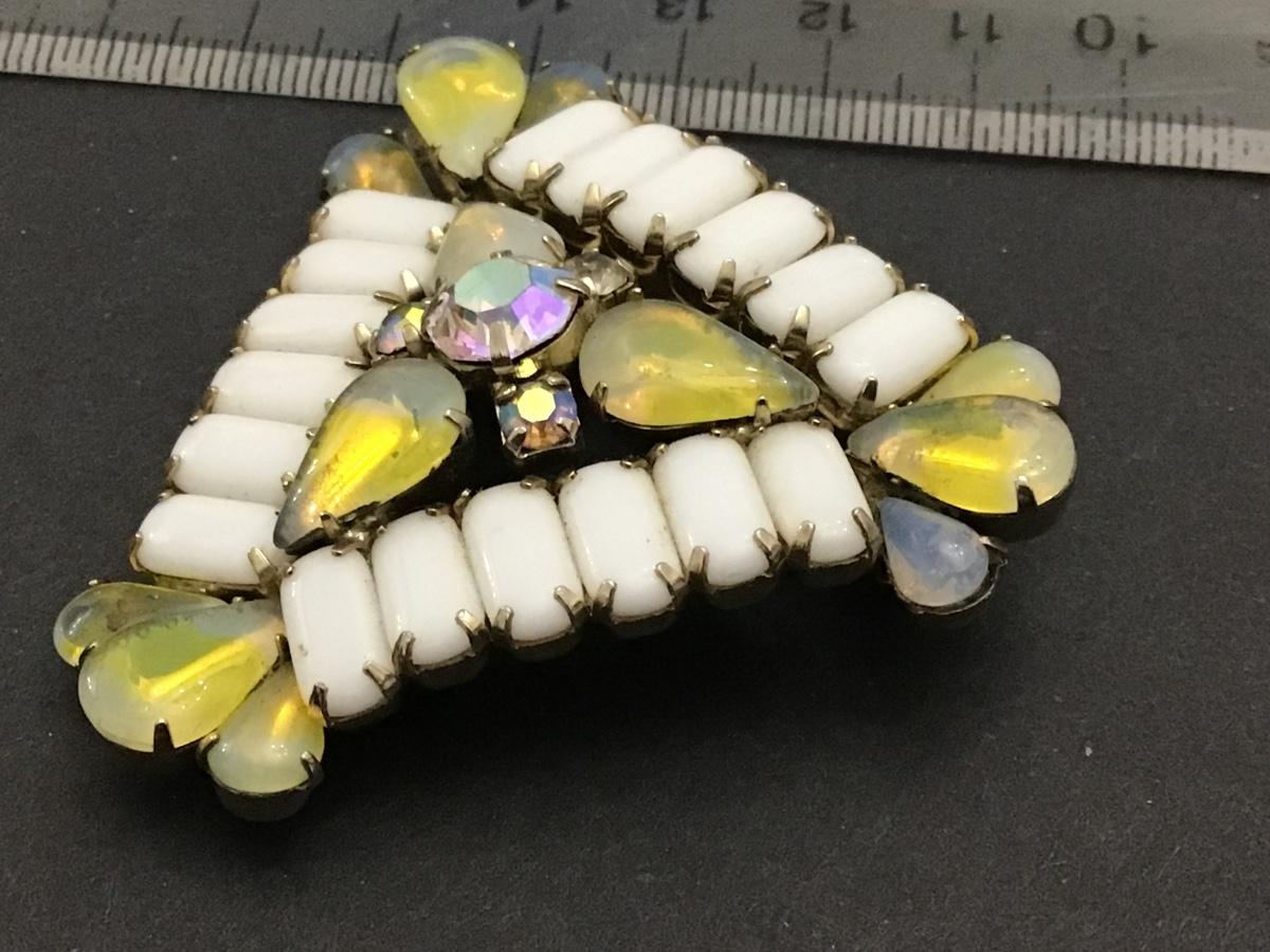 Opalescent Yellow Milk Glass Aurora Borealis Vintage Brooch