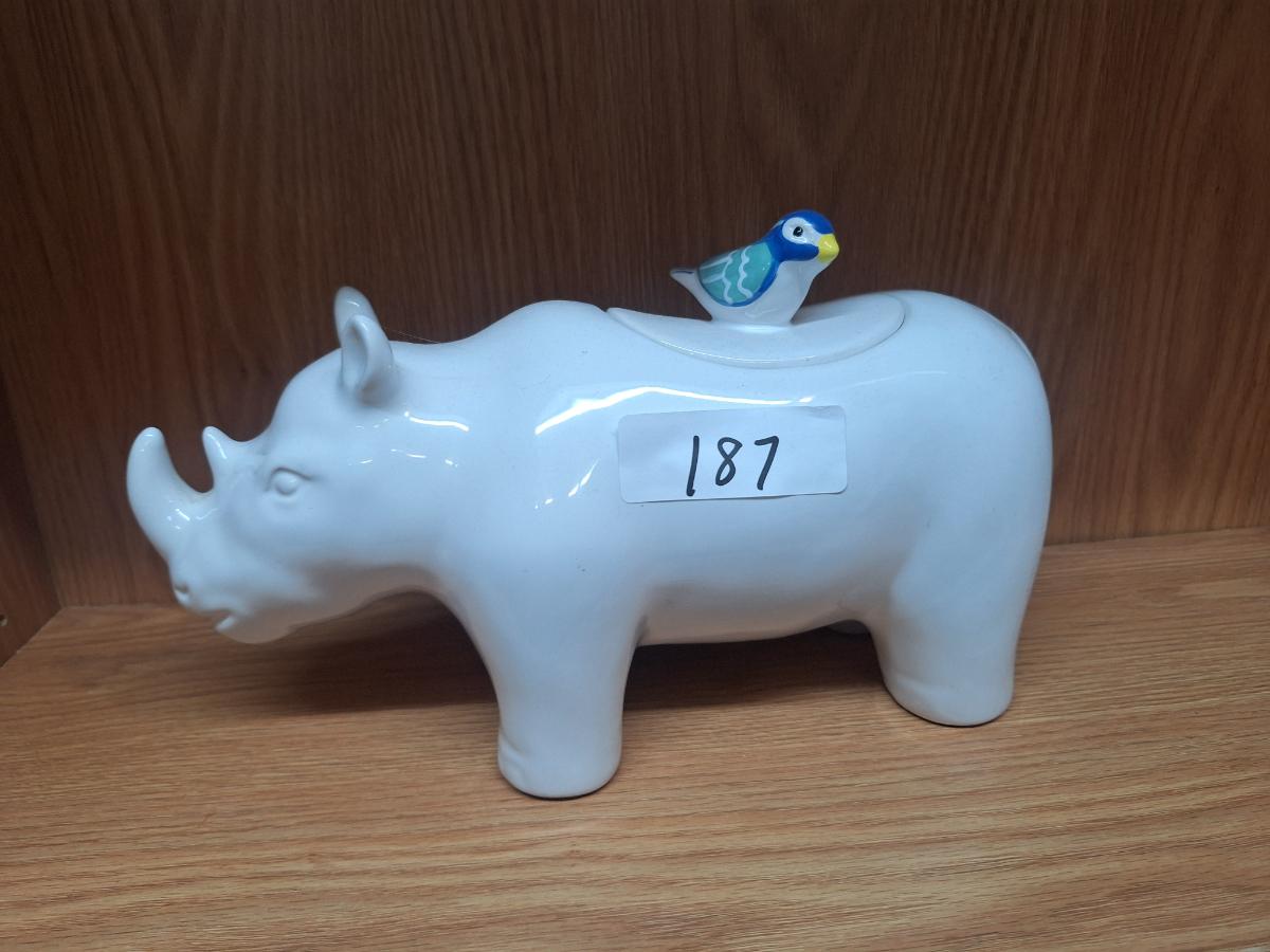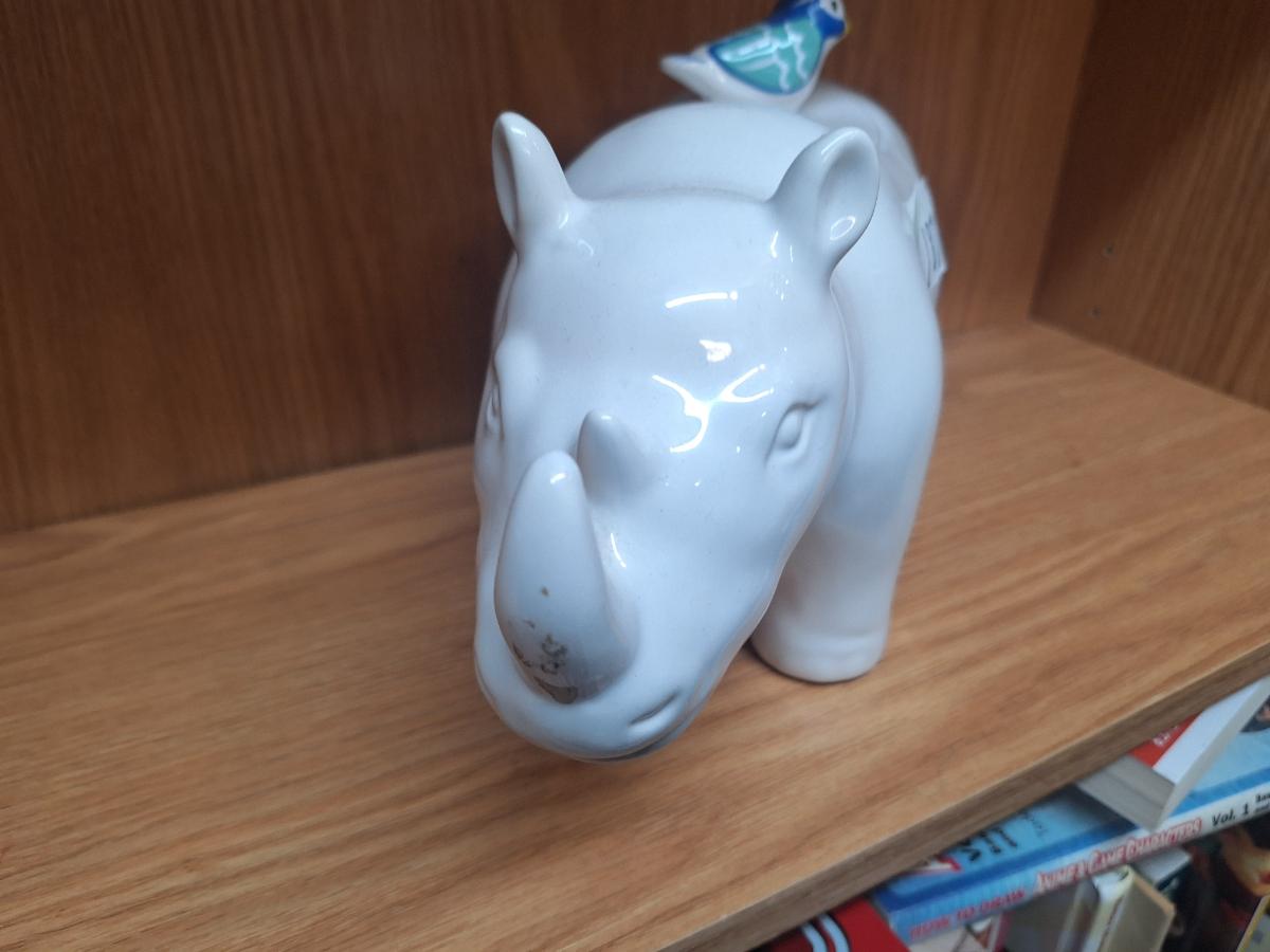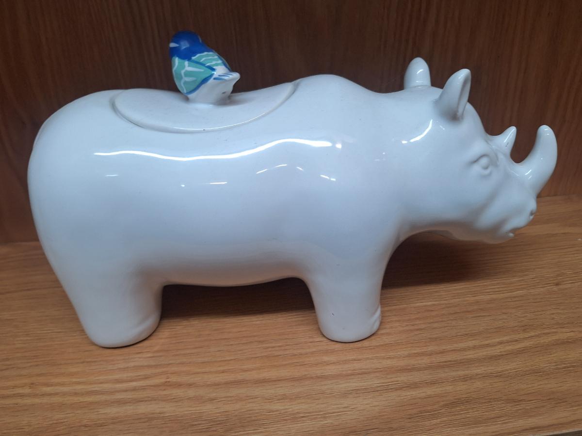 Opalhouse Stoneware White Rhino and little blue bird cookie jar