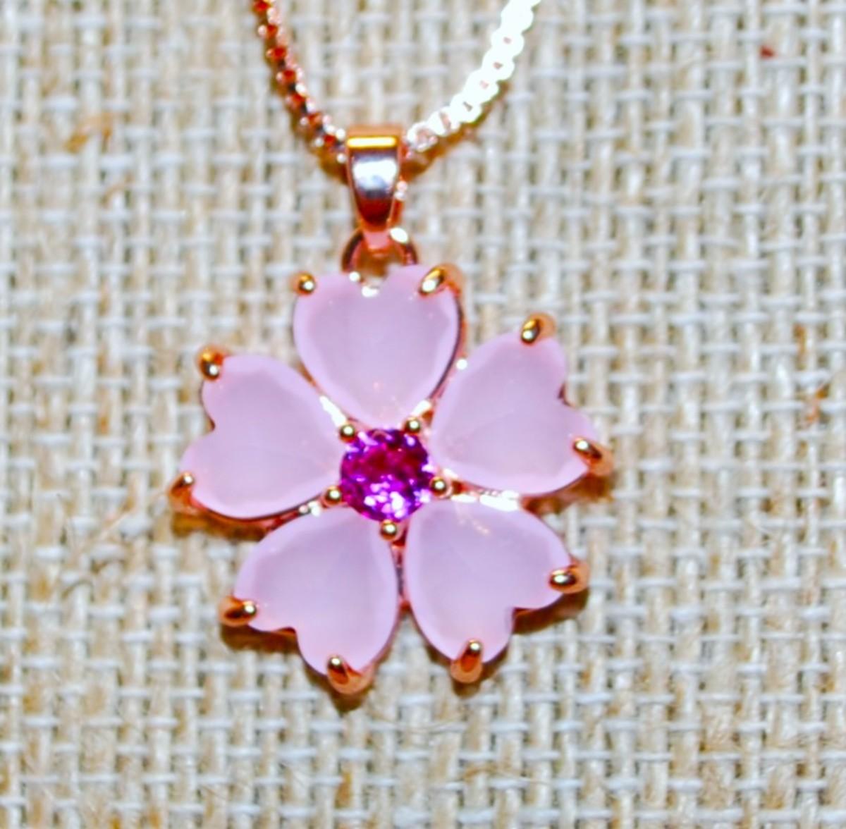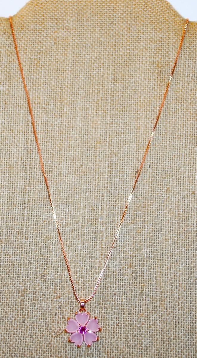 Opaque Pink Petals Flower PENDANT (¾" Diam.) & Deeper Pink Center on a Rose Gold Necklace Chain 17" L