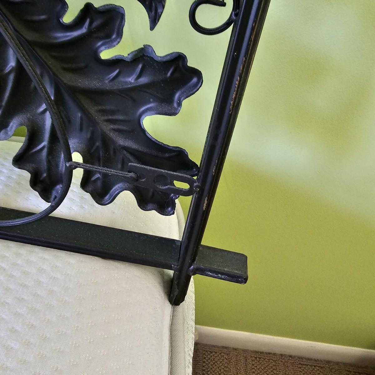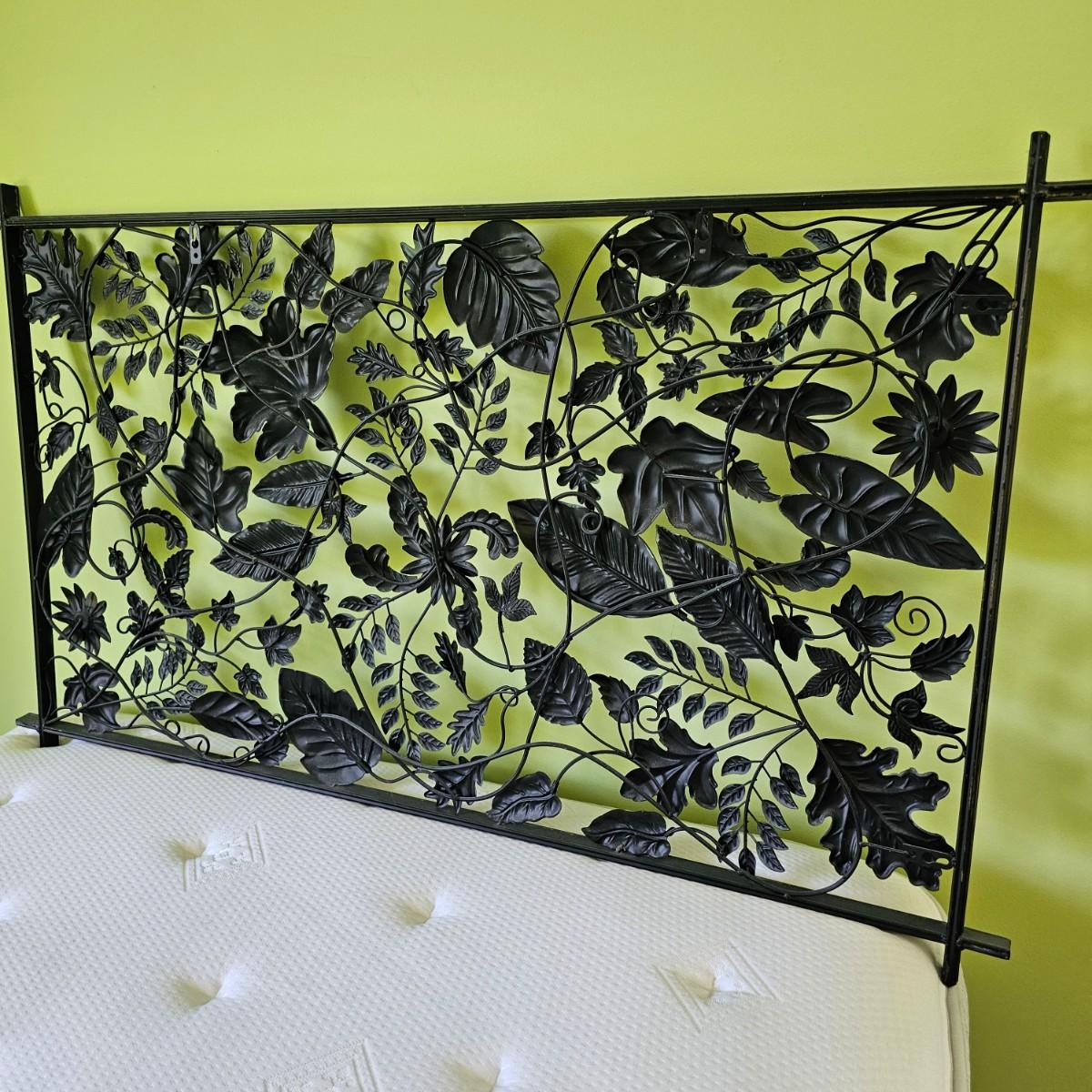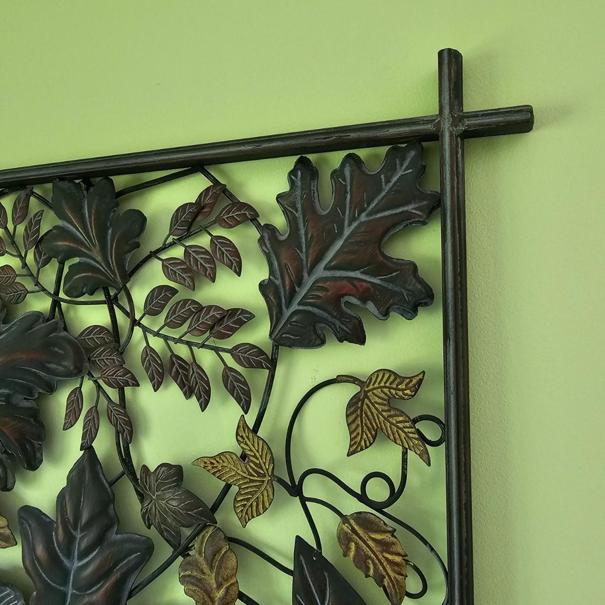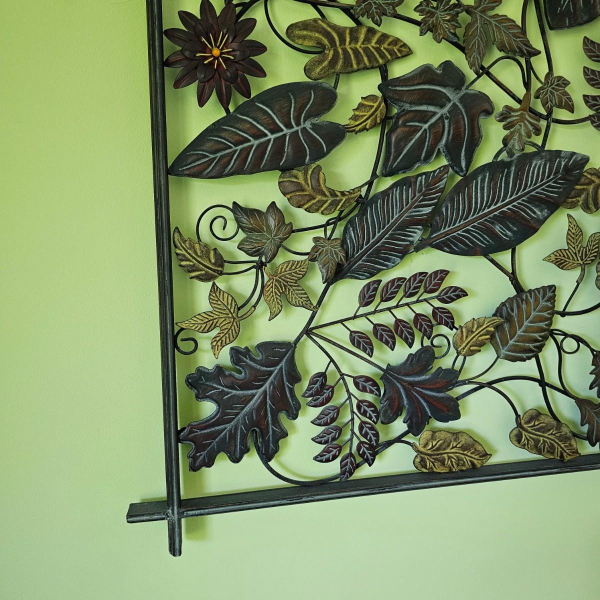 Decorative leaves and vines make up this 3D open artwork. Steel construction, piece measures 51" x 1.5" x 31"H, but can be hung vertical or horizontal with attached hooks. See photos for details. Local pickup only.