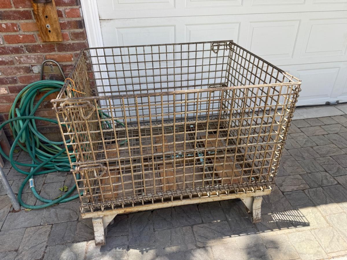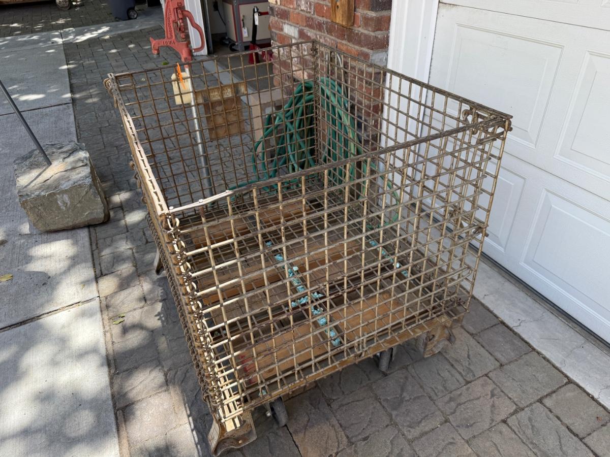 Very heavy Steel rolling Crate on rolling cart - have another similar crate also in the auction