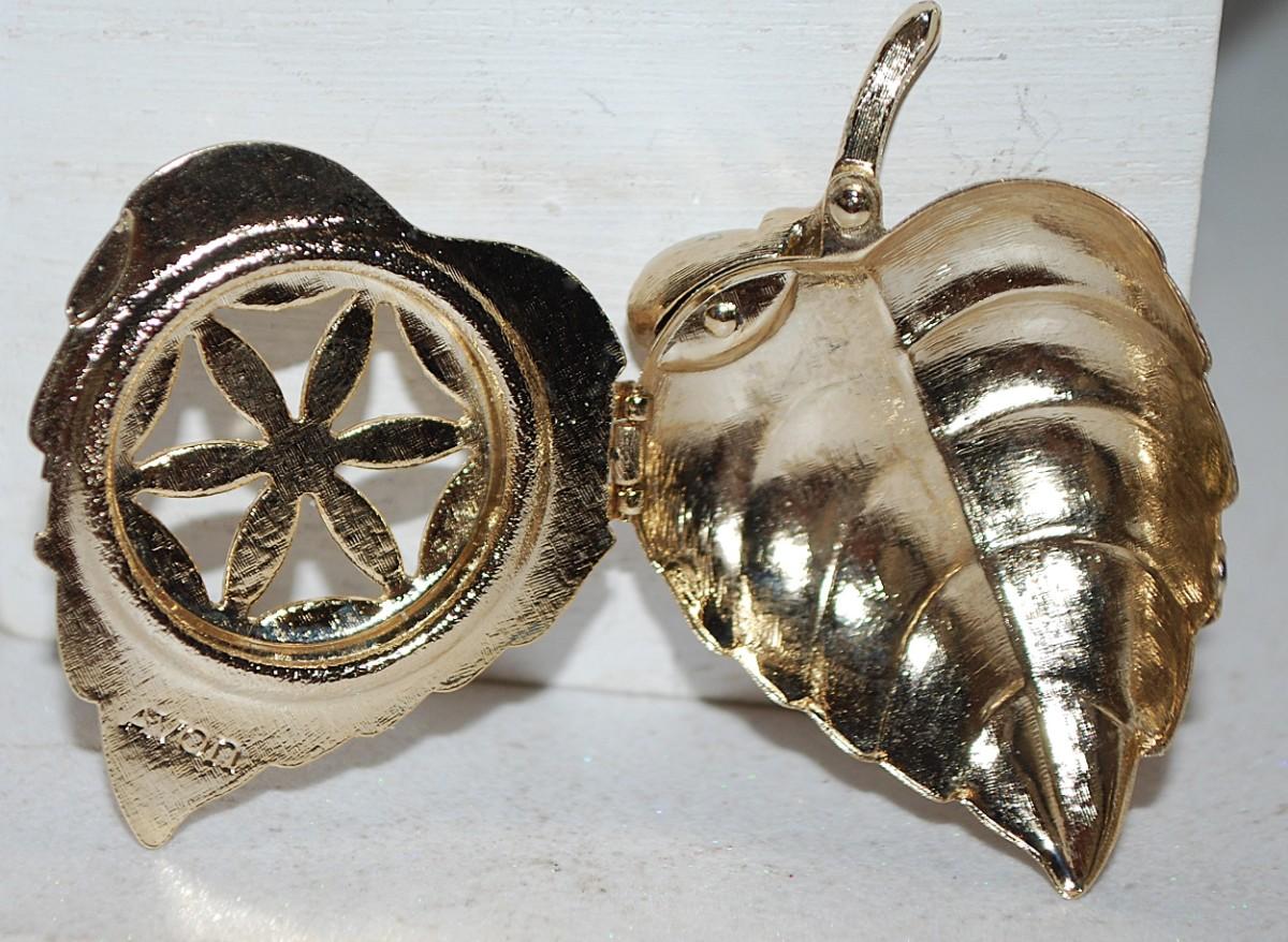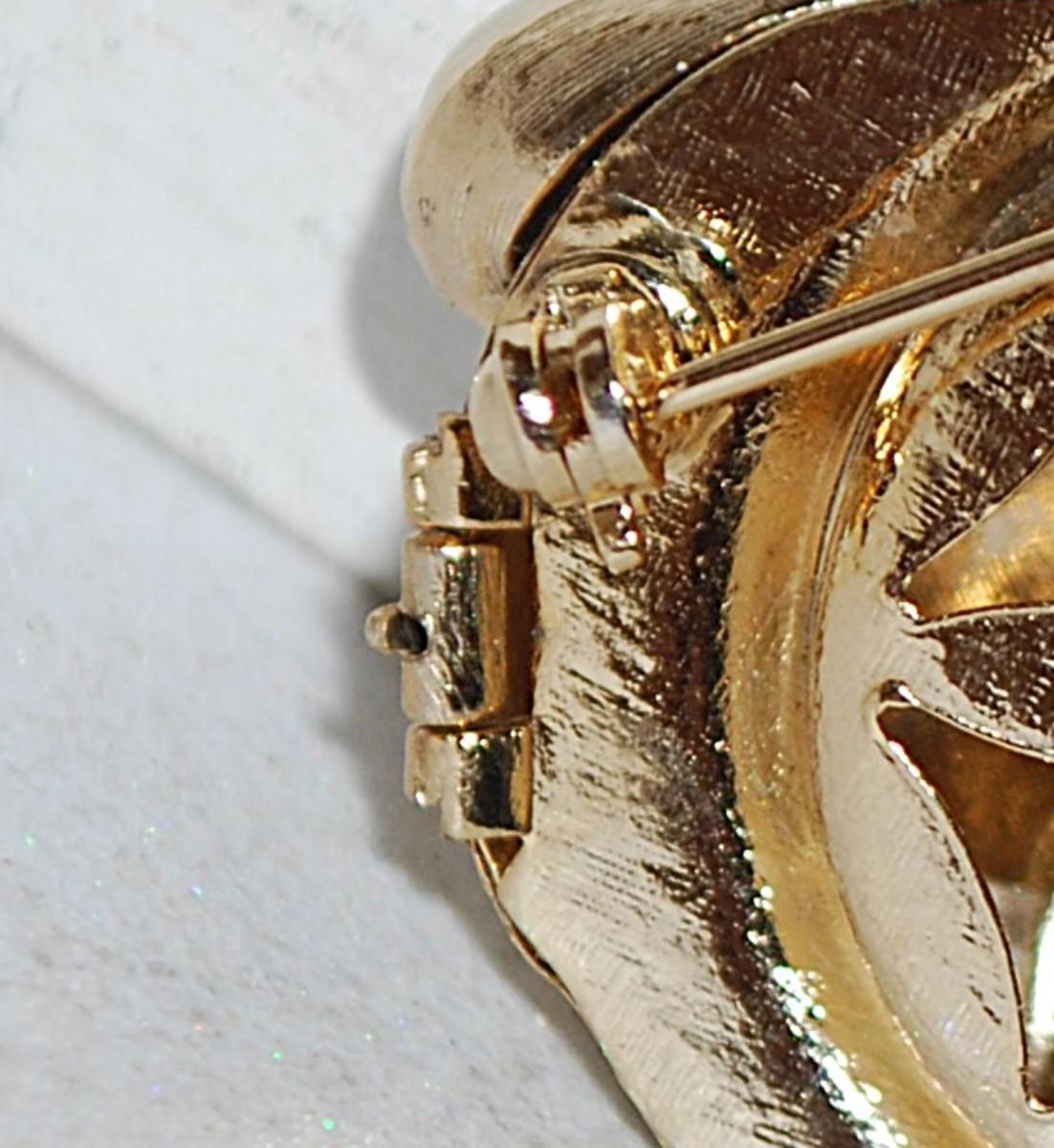 Open/Close LOCKET-STYLE HEART BROOCH (2¼" x 1½") -- Marked "AVON" -- with White Teardrop Faux Pearl on a Gold Tone Setting