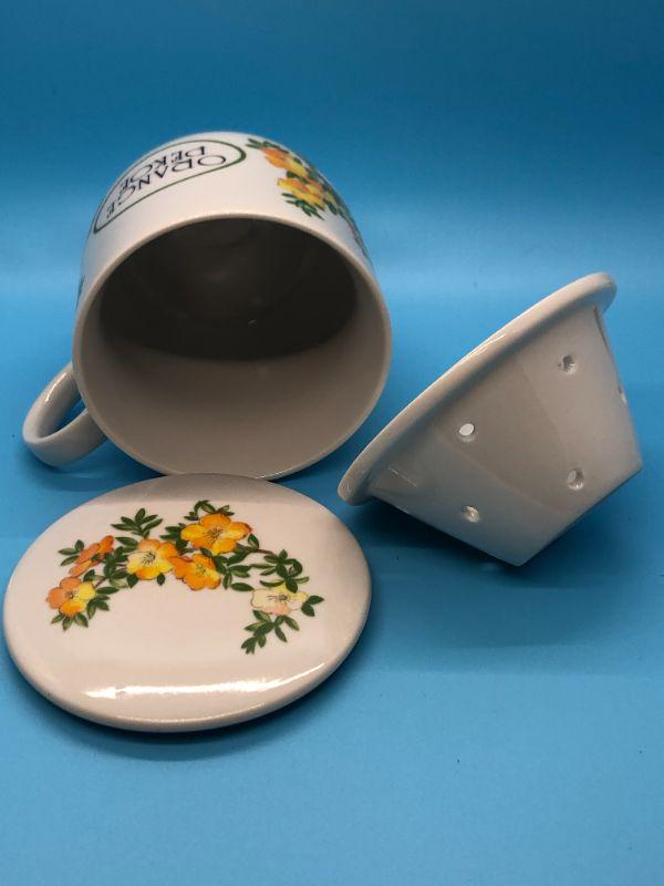 Oraange Pekoe Tea Cup / Mug with Filter and Top.