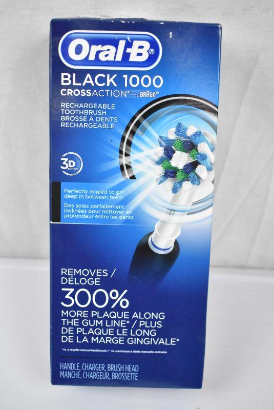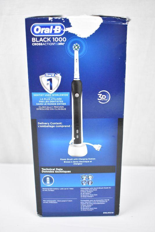 Oral-B 1000 Crossaction Electric Toothbrush, Black, Powered By Braun, 1 Refill. Open Box