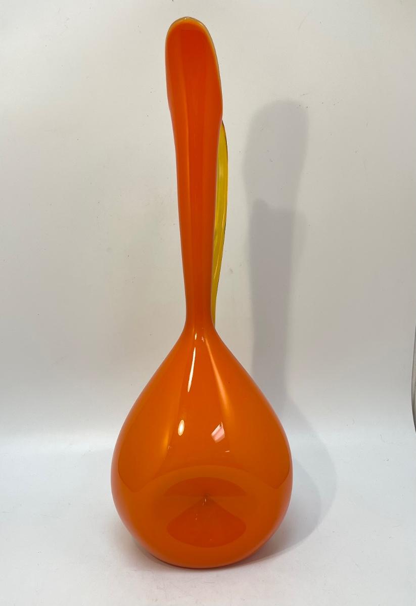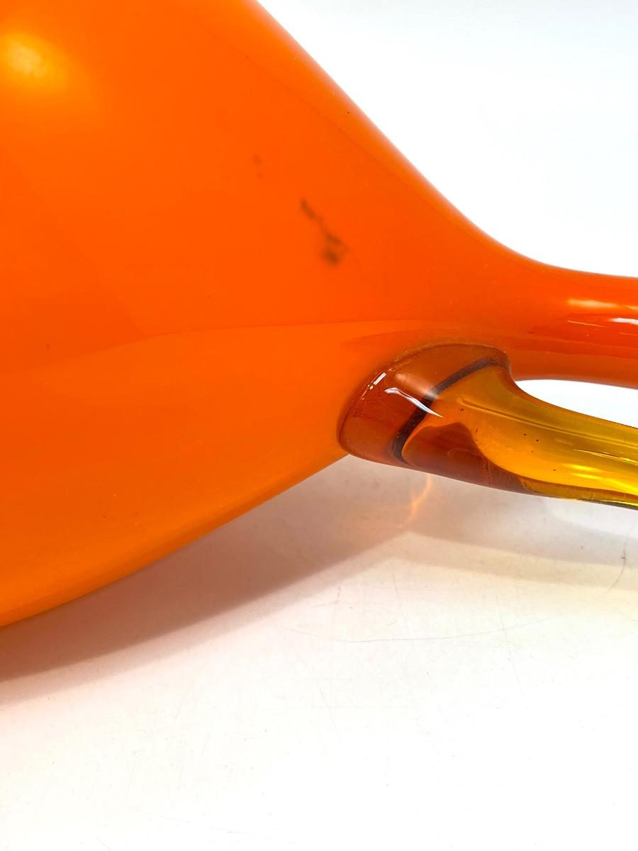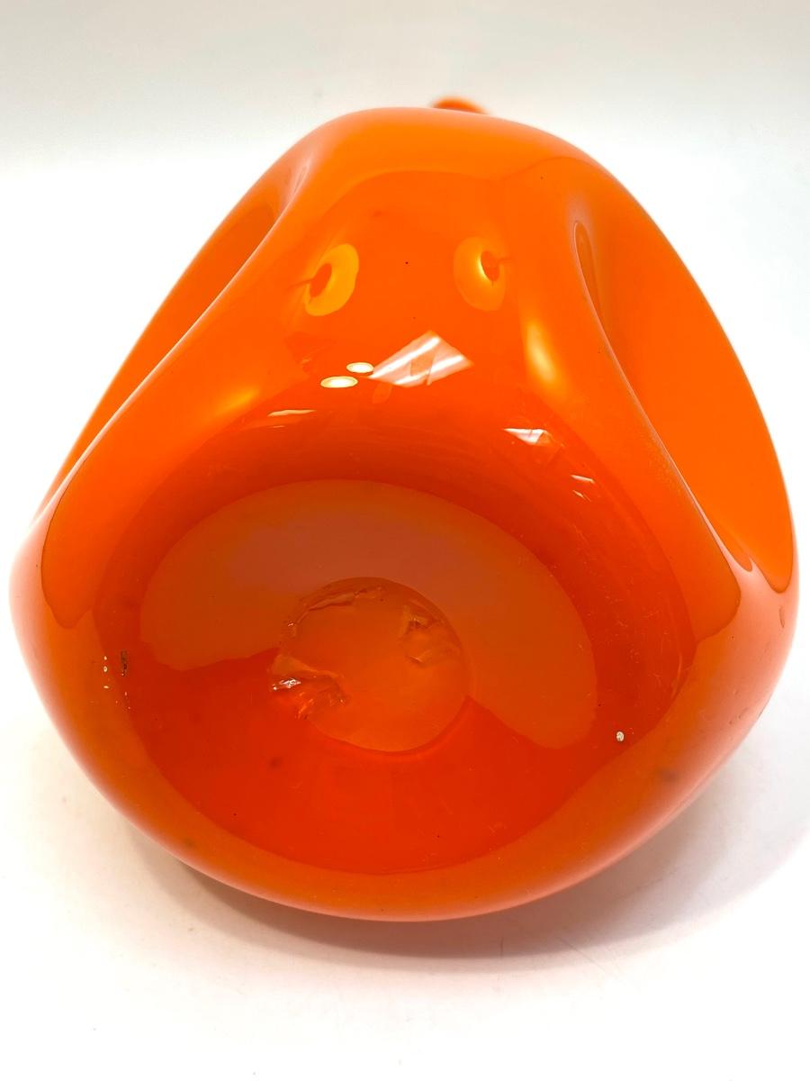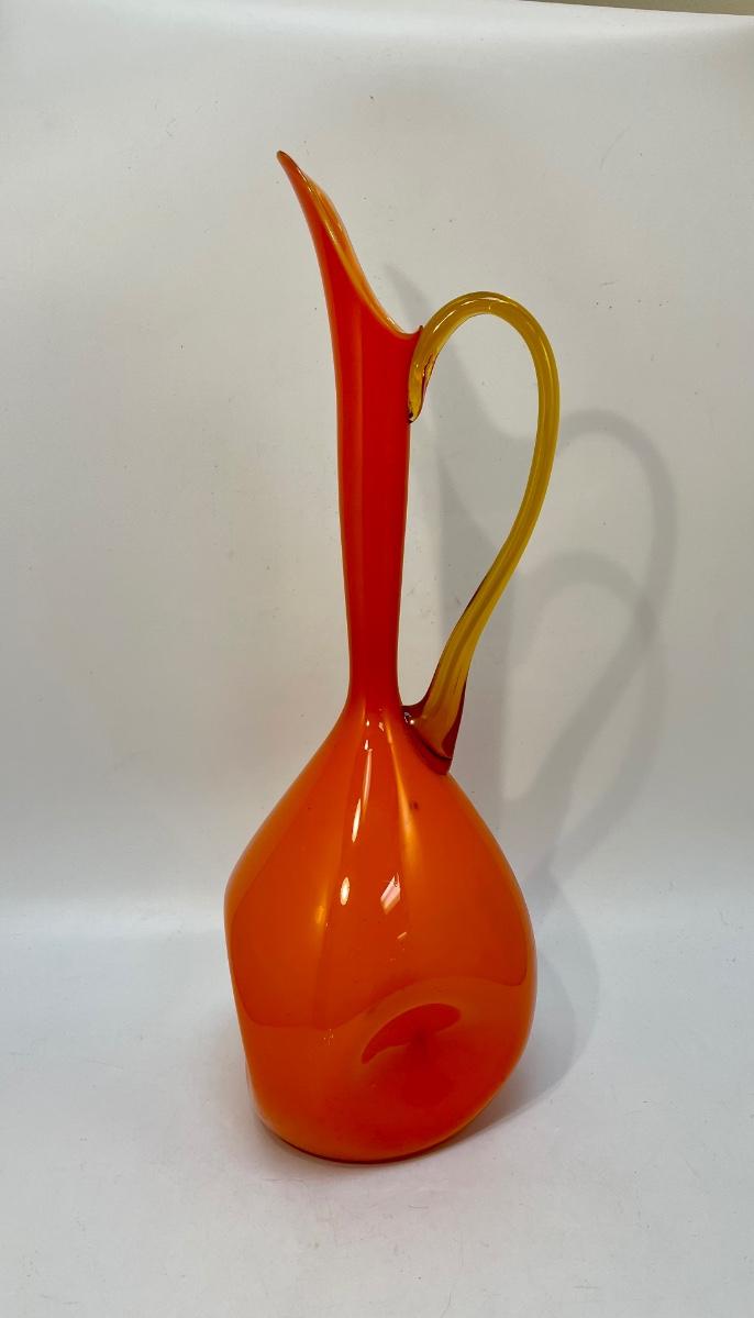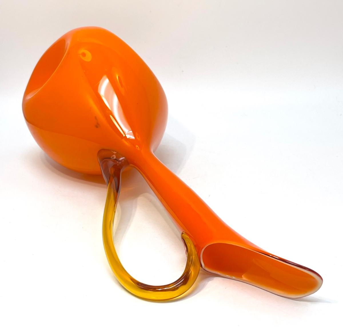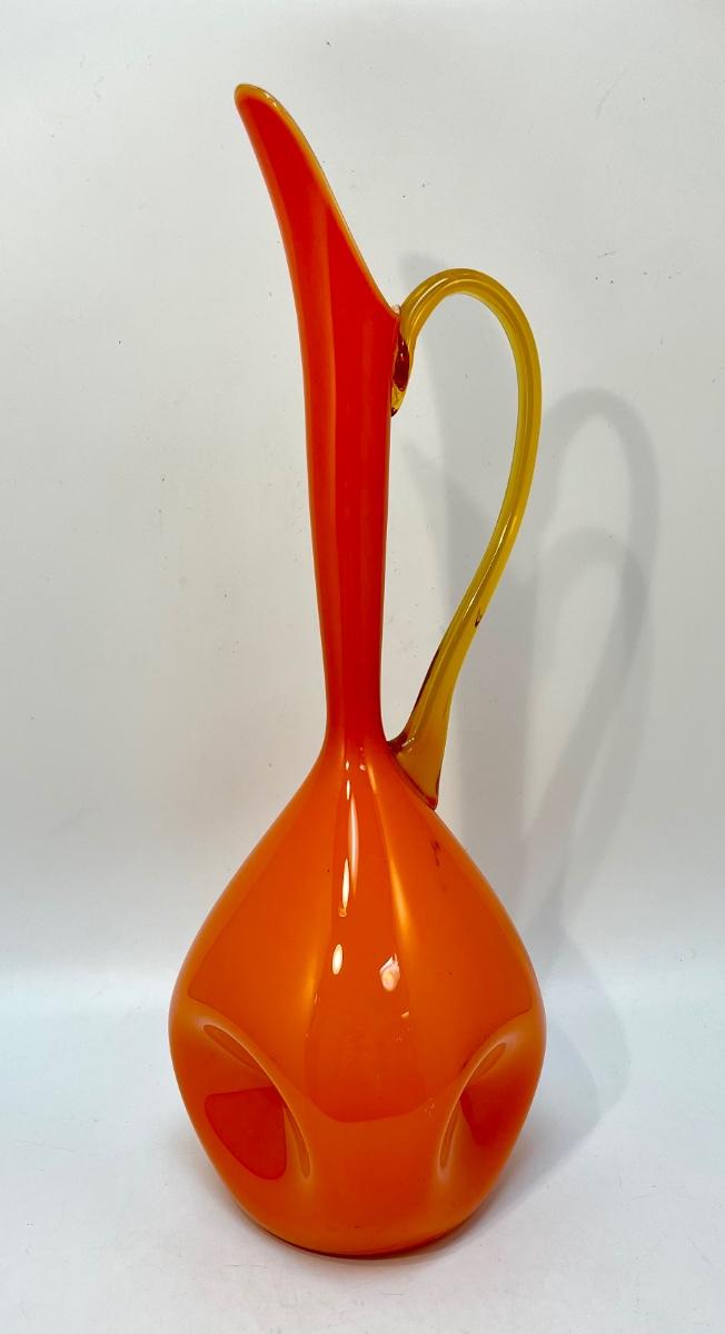 Rare Empoli Mid Century Modern Orange Cased Dimpled Art Glass Jug or Pitcher Handblown 18"