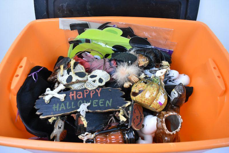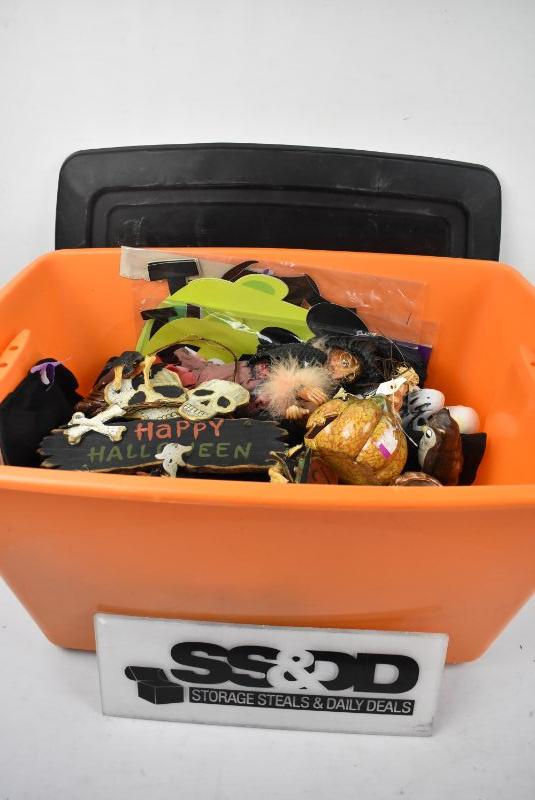 Orange & Black Bin of Halloween Decor (Bin Included)