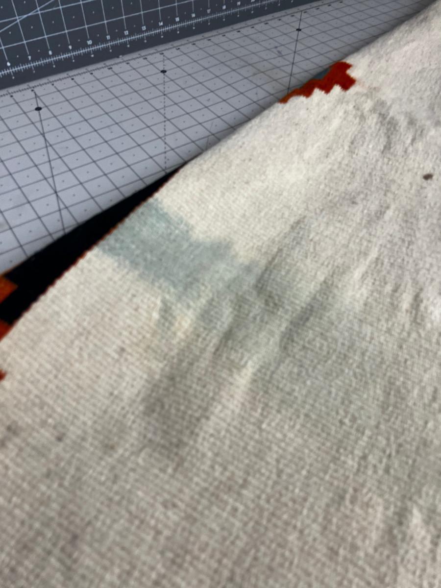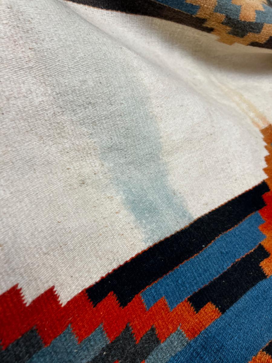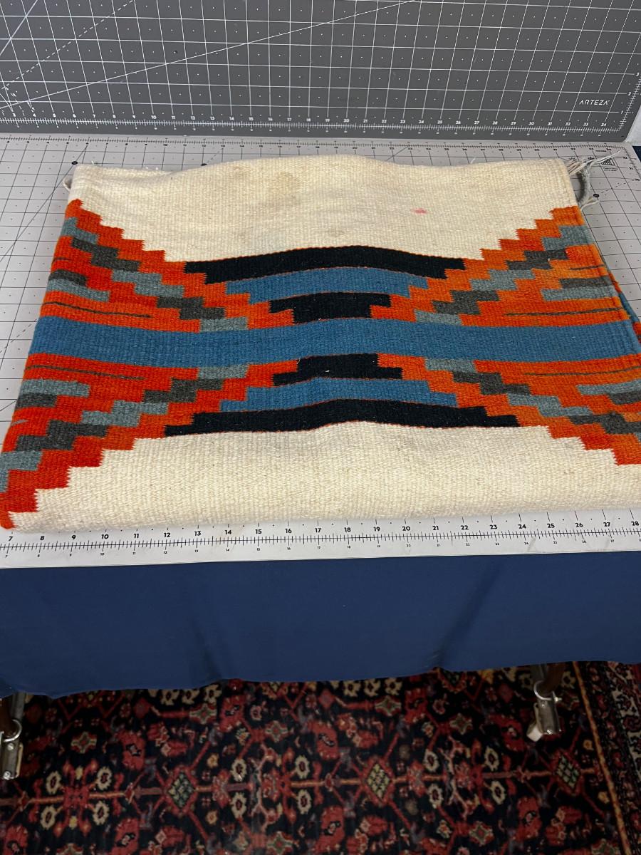 45" by 71" 2 ends fringed. Some Fading Wool on Cotton.