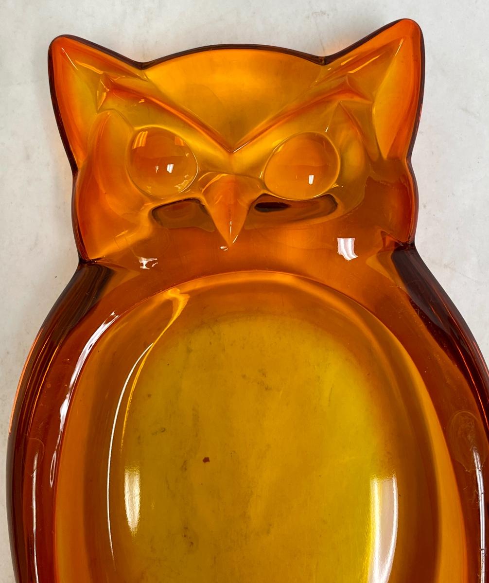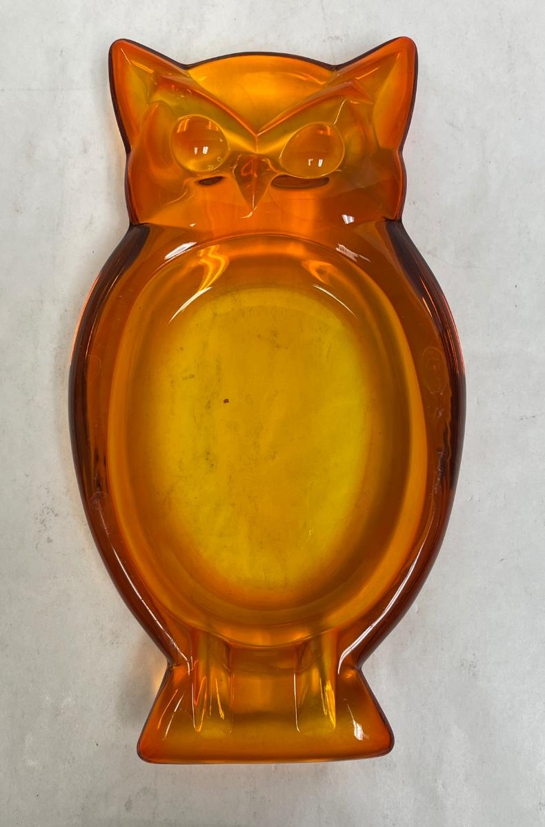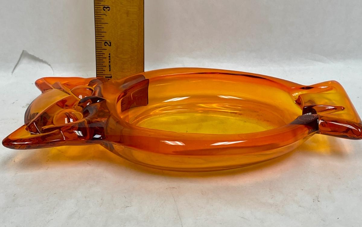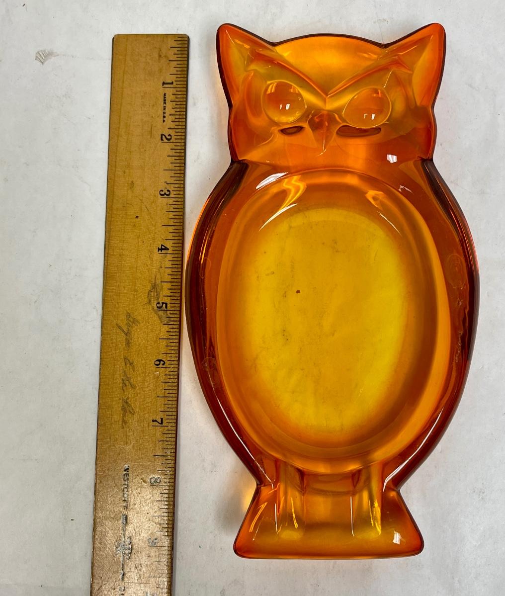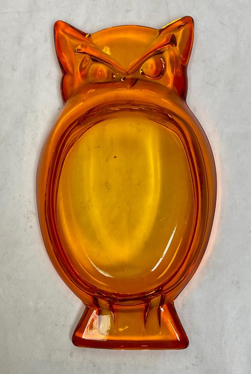 Retro Vintage Orange Blown Glass Owl Dish or Ashtray MCM