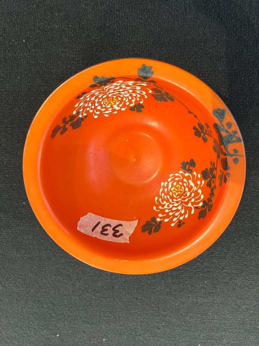 Orange Bowl, White Flower Print With Plate -Made In Japan -