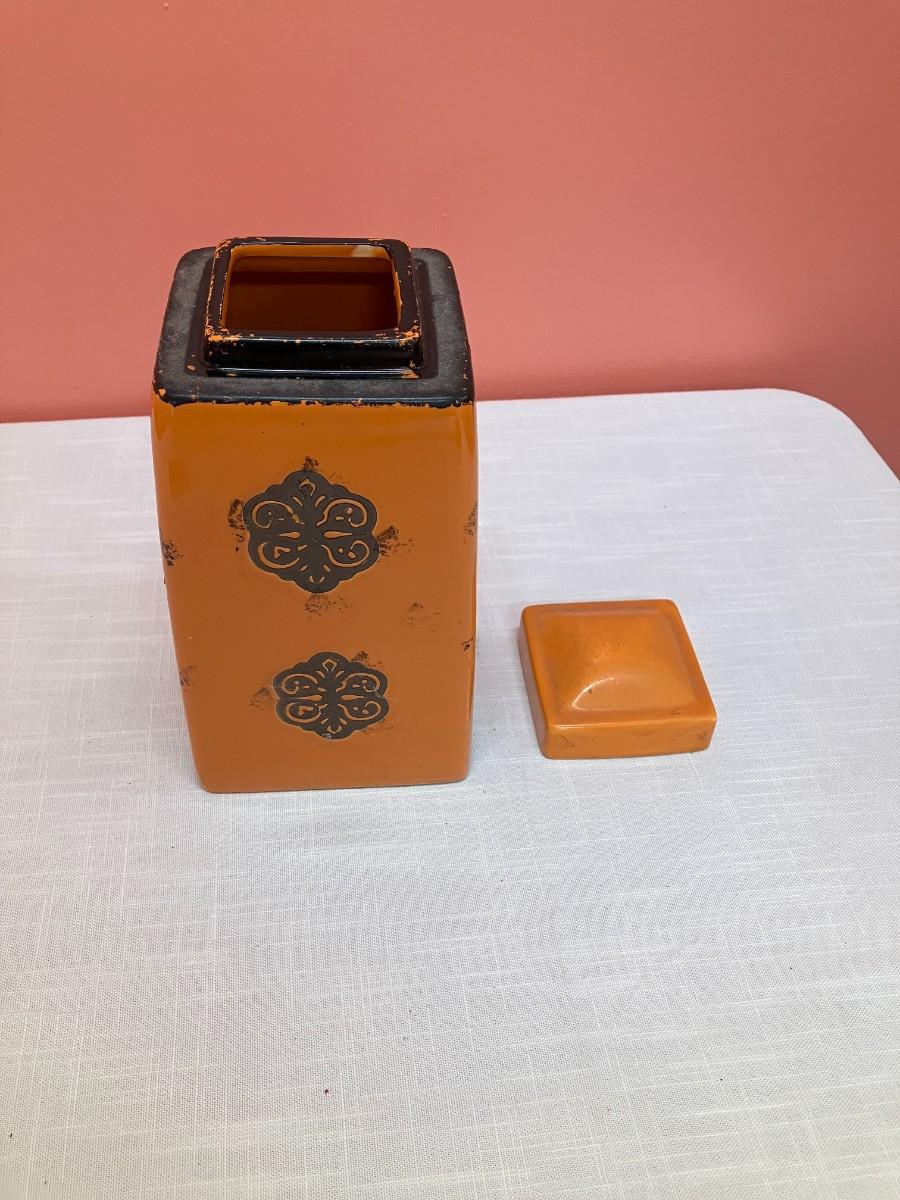 This cute orange ceramic canister is great for cookies or storing all kinds of things