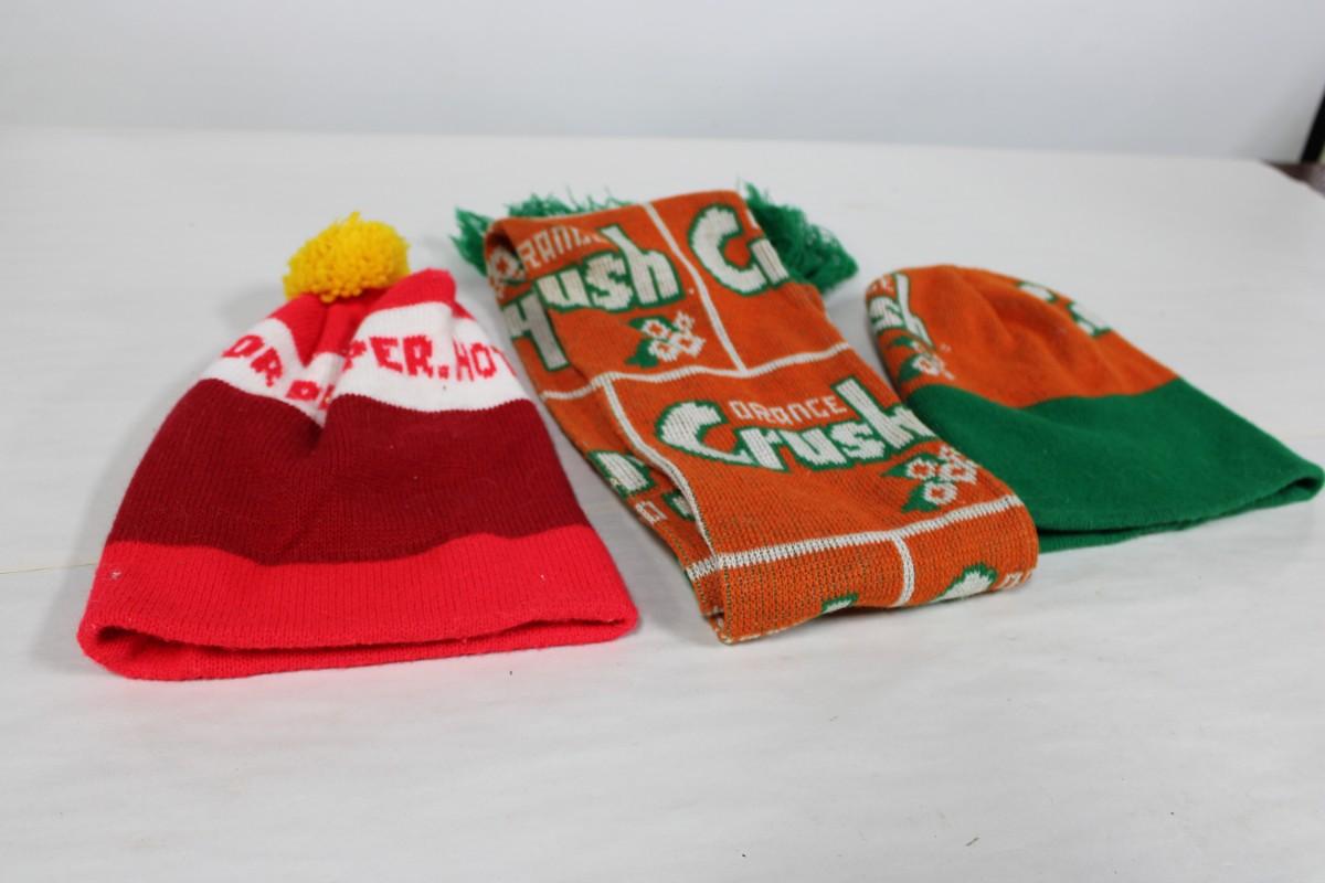 Orange Crush Hat & Scarf & Dr. Pepper Hat