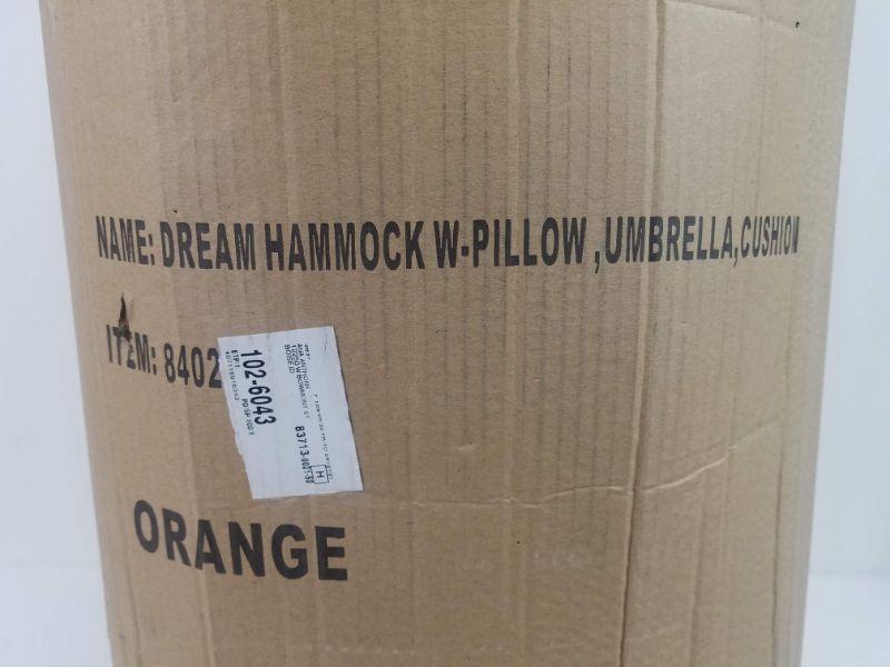 Orange Dream Hammock w/ Pillow, Umbrella, Cushion, Metal Base NOT Included - New