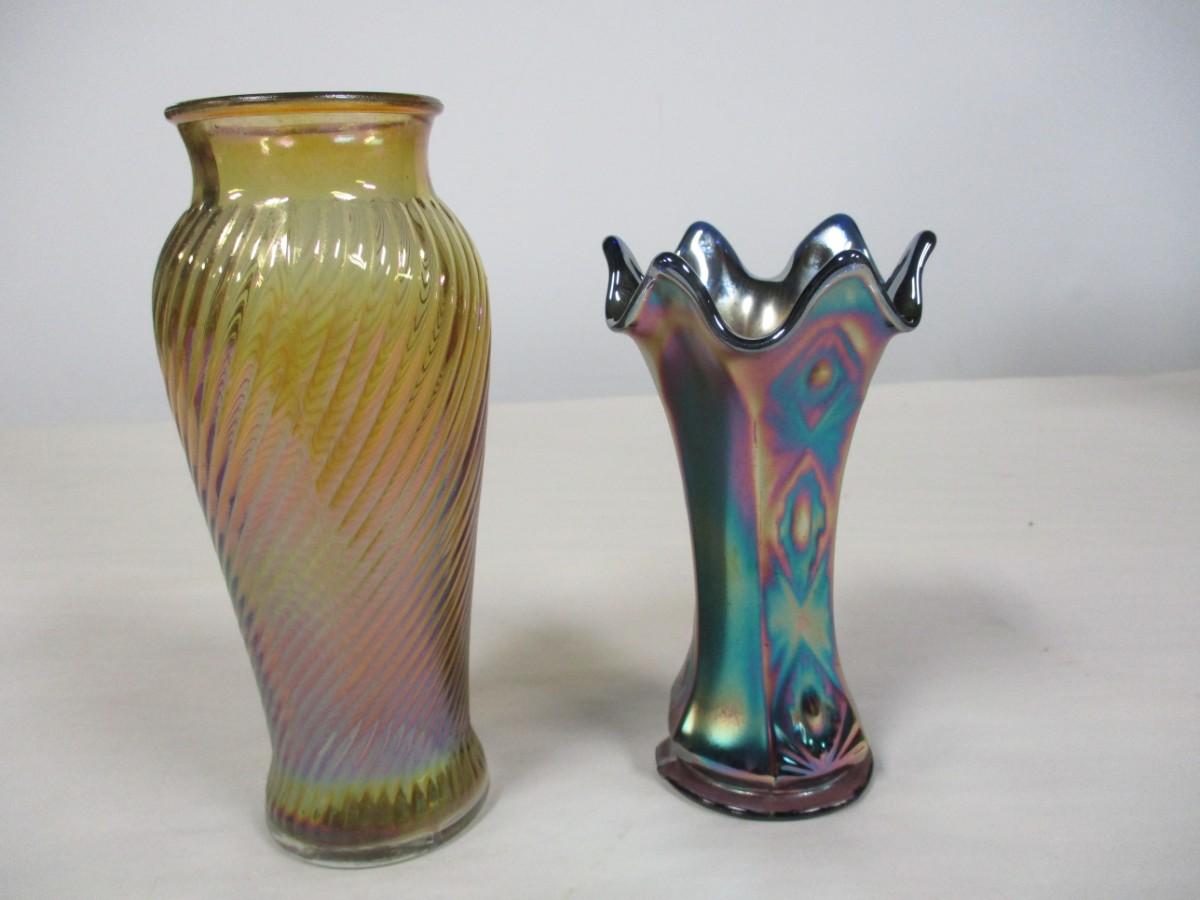 Orange Imperial Glass Vase & Purple Fenton Vase