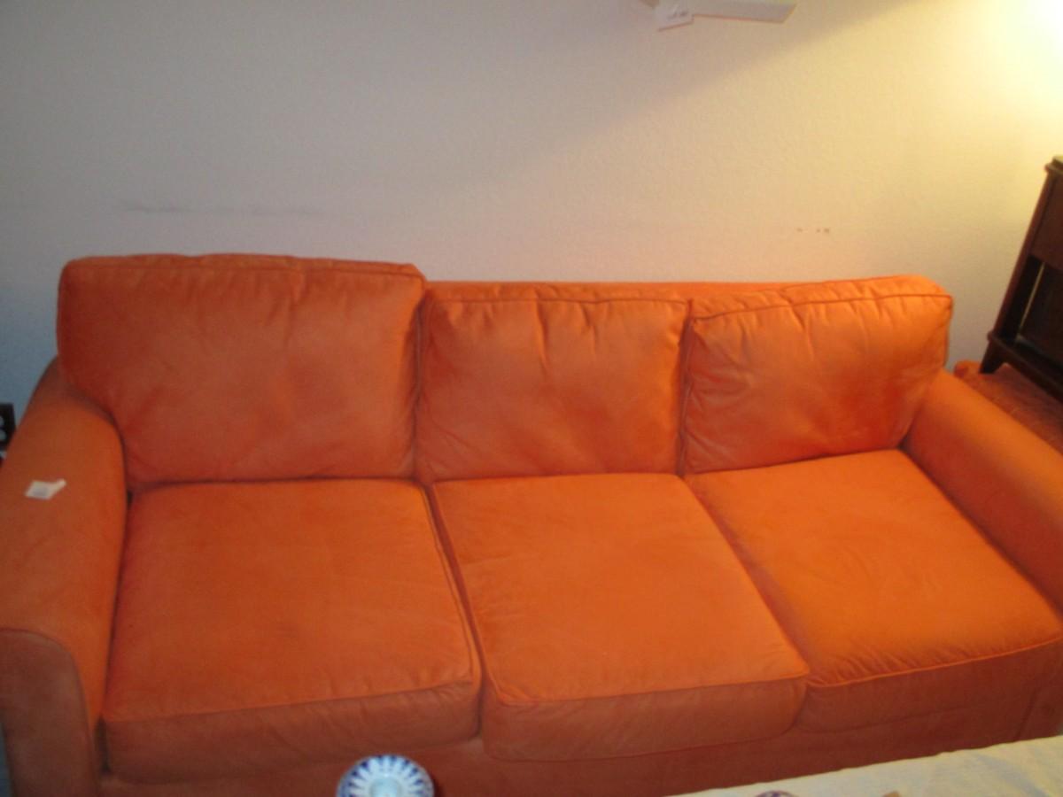 Orange Pottery Barn Sued Sofa