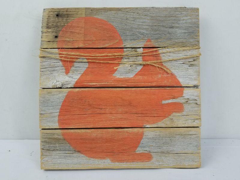 Orange Squirrel Rustic Wall Decor Sign 13.5" x 13"