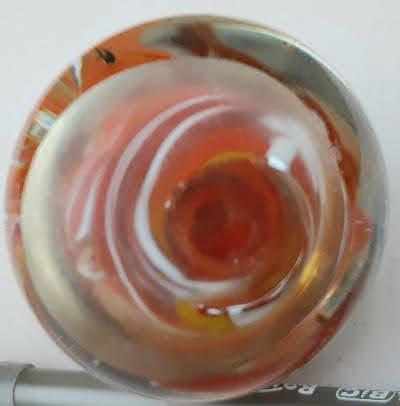 The fuzzy focus picture is the flat bottom. measures 2.25in tall and 2.25in diameter