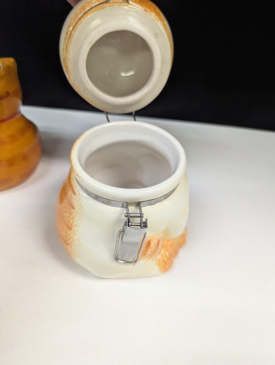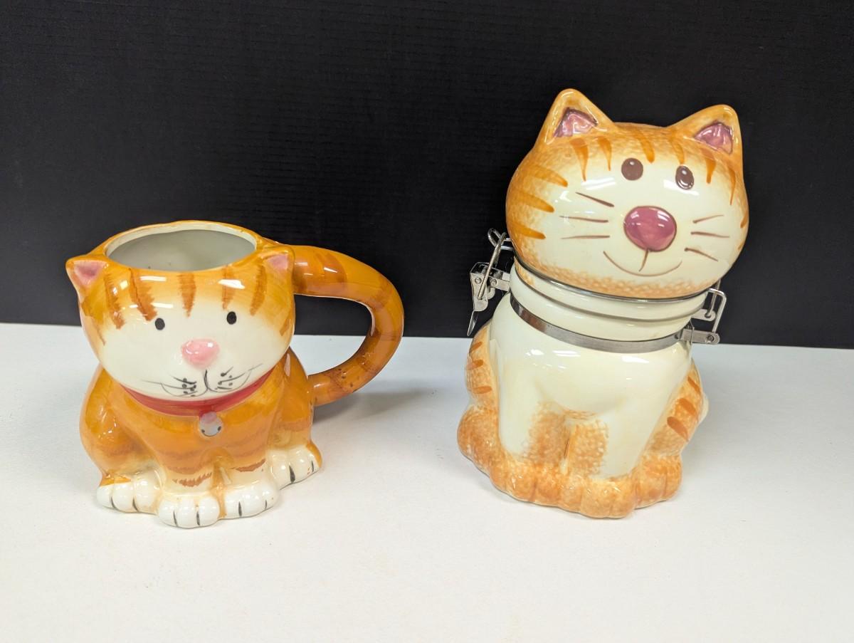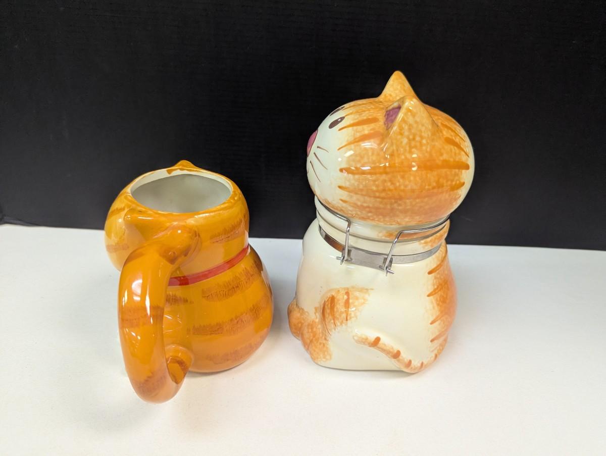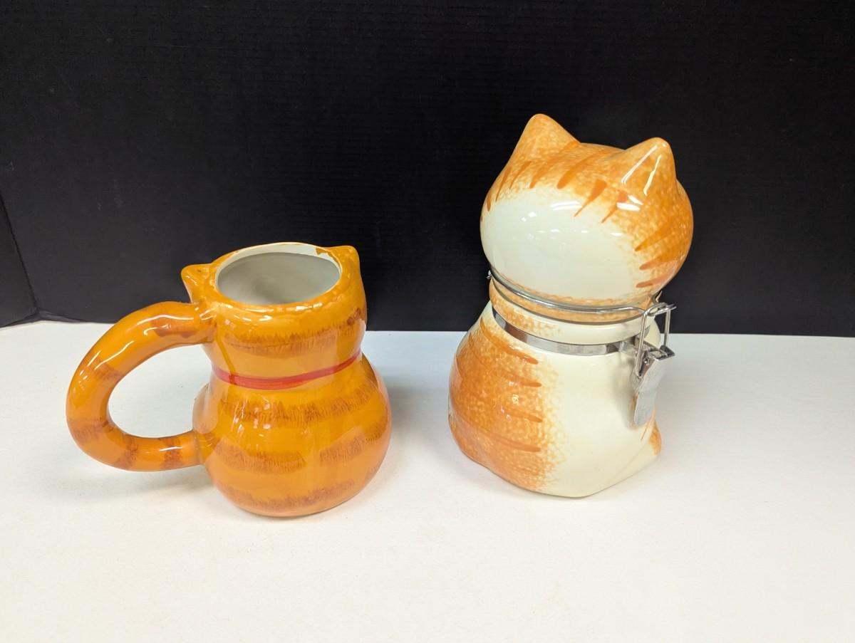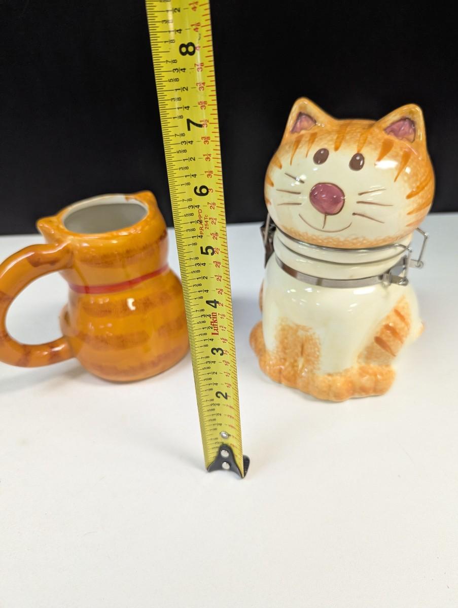 Orange Tabby Kitty Cat Hinged Canister Treat Jar & Orange & White Cat Mug