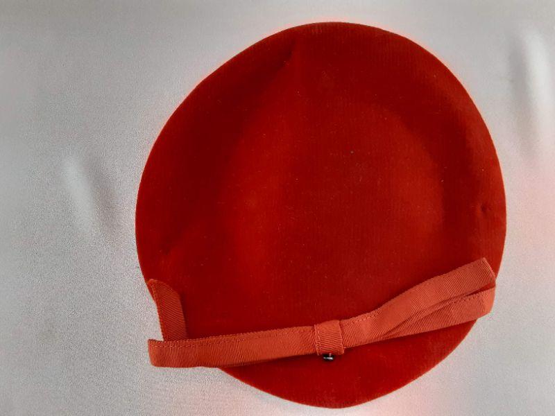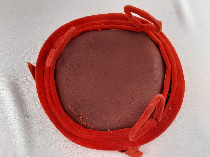 Cute ribbon atop the velvety hat. Measures 7.5in. diameter