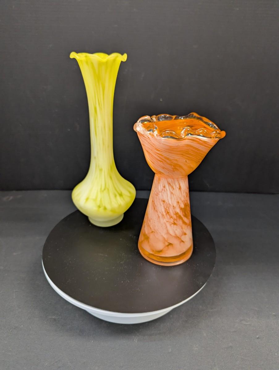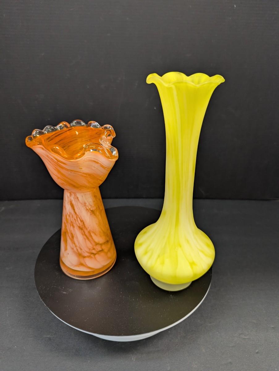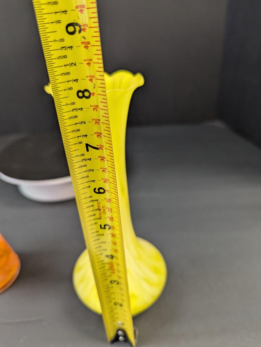 Orange & White Glass Fluted Bud Vase & Yellow & White Glass Bud Vase