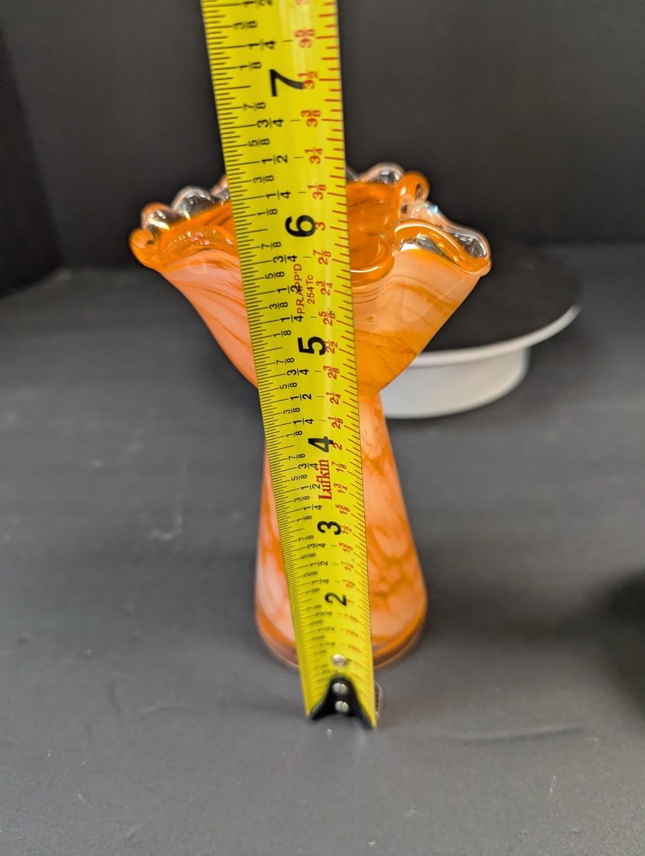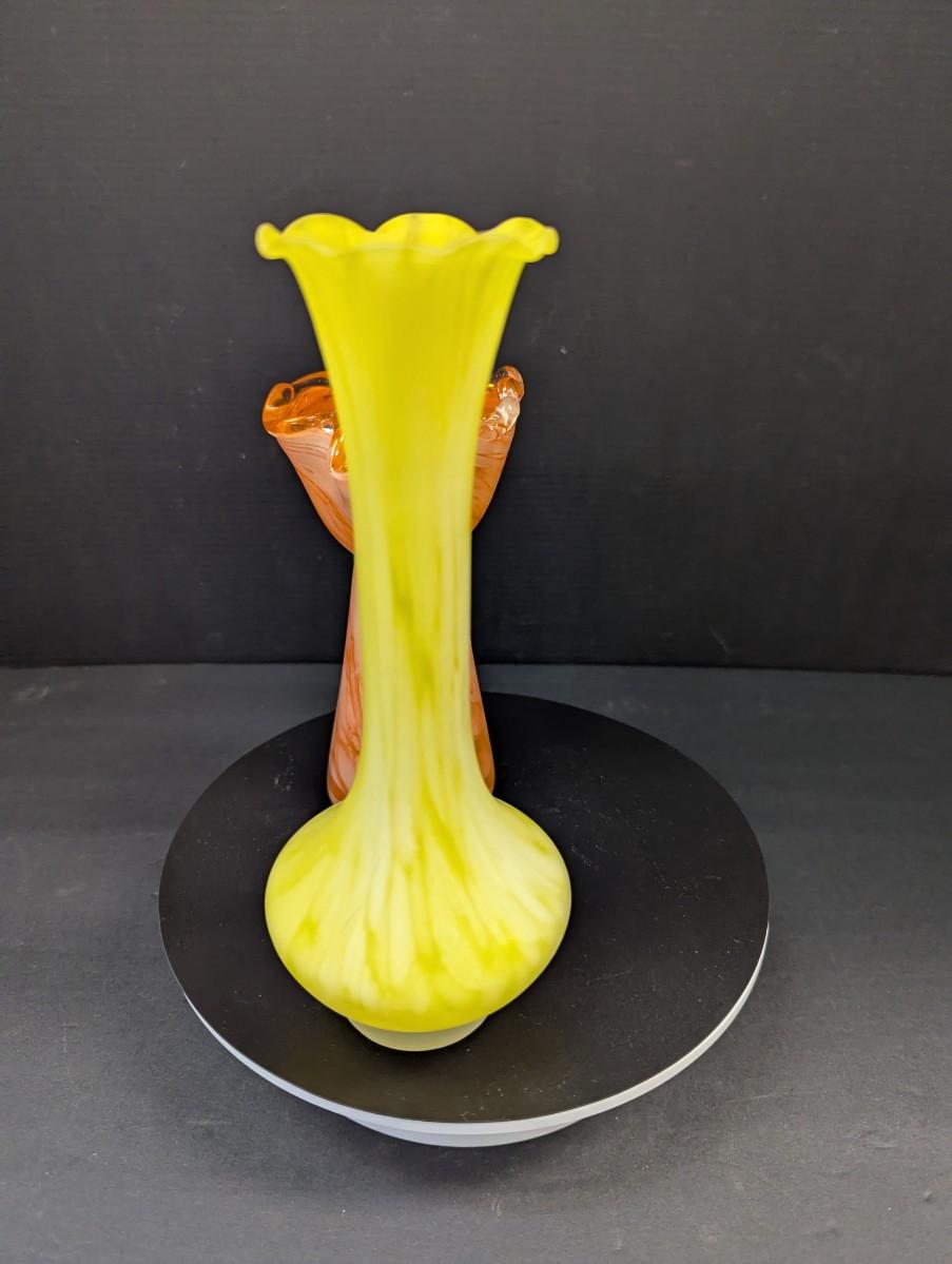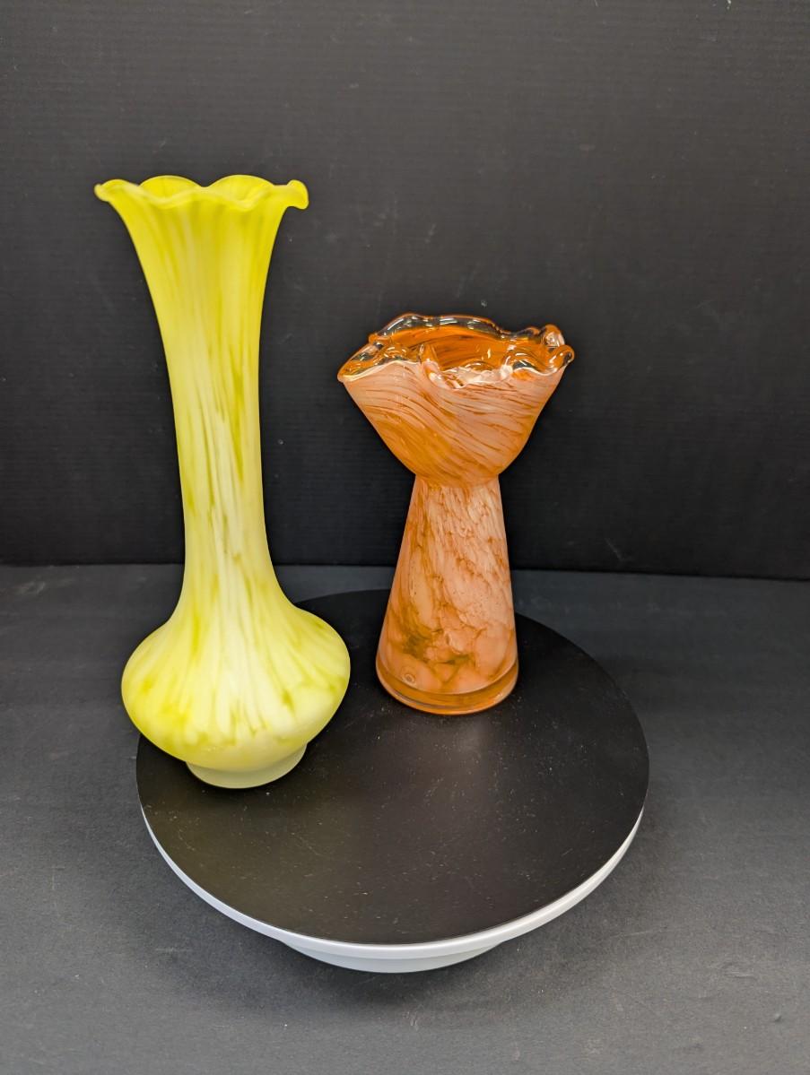 Orange & White Glass Fluted Bud Vase & Yellow & White Glass Bud Vase