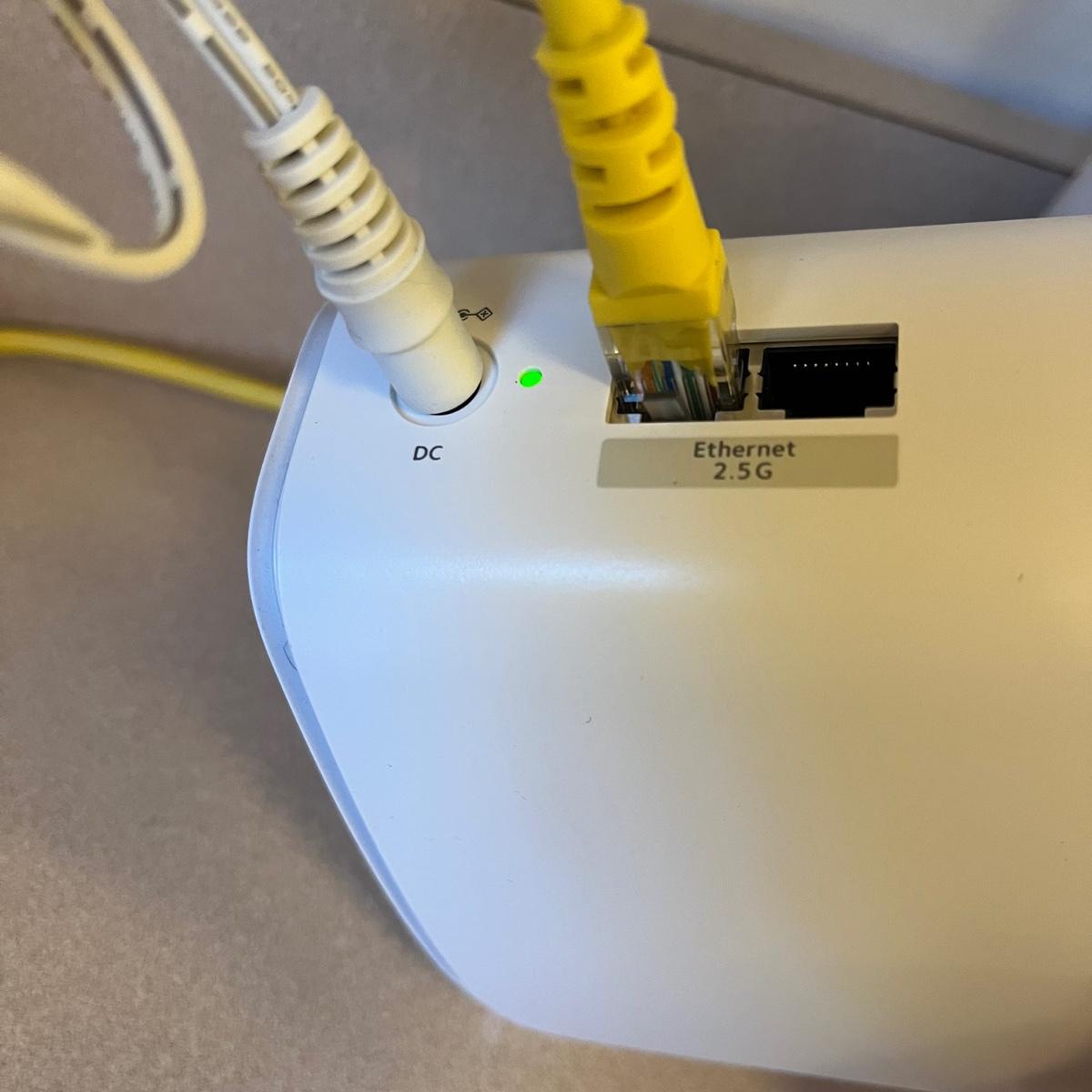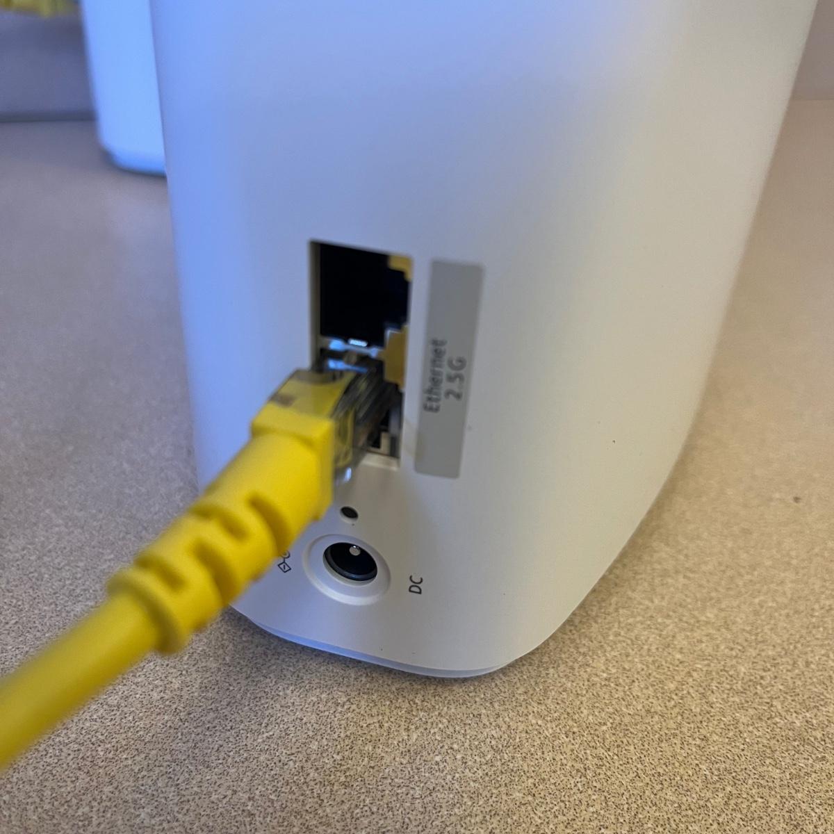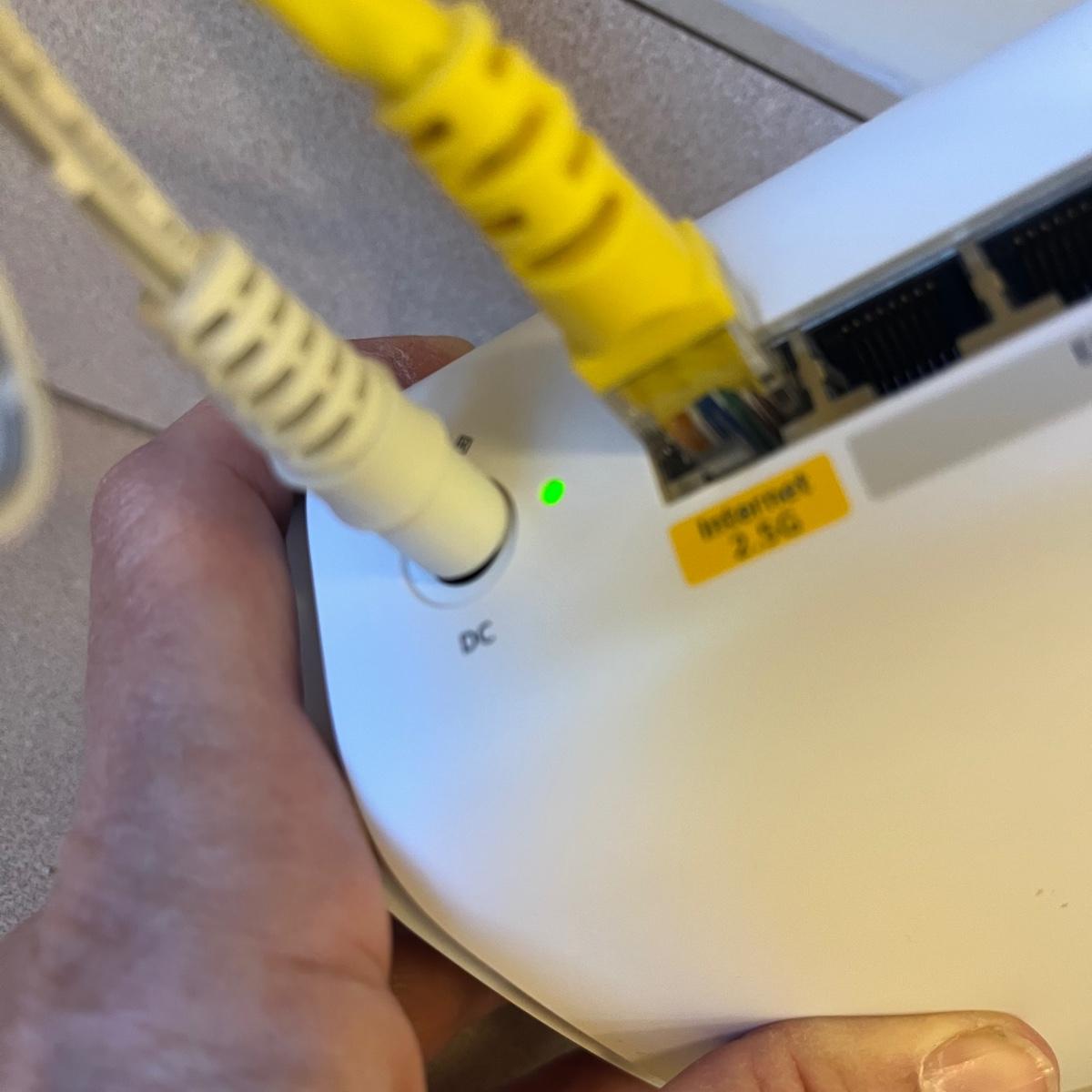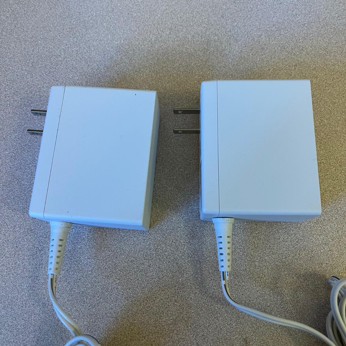 Two Orbi routers each measure 4” x 5” x 10”H. Includes two Netgear power adapters and an ethernet cable. See pictures for details. Shipping available.