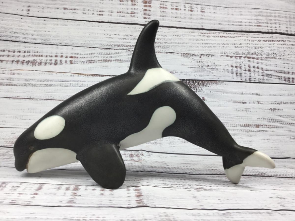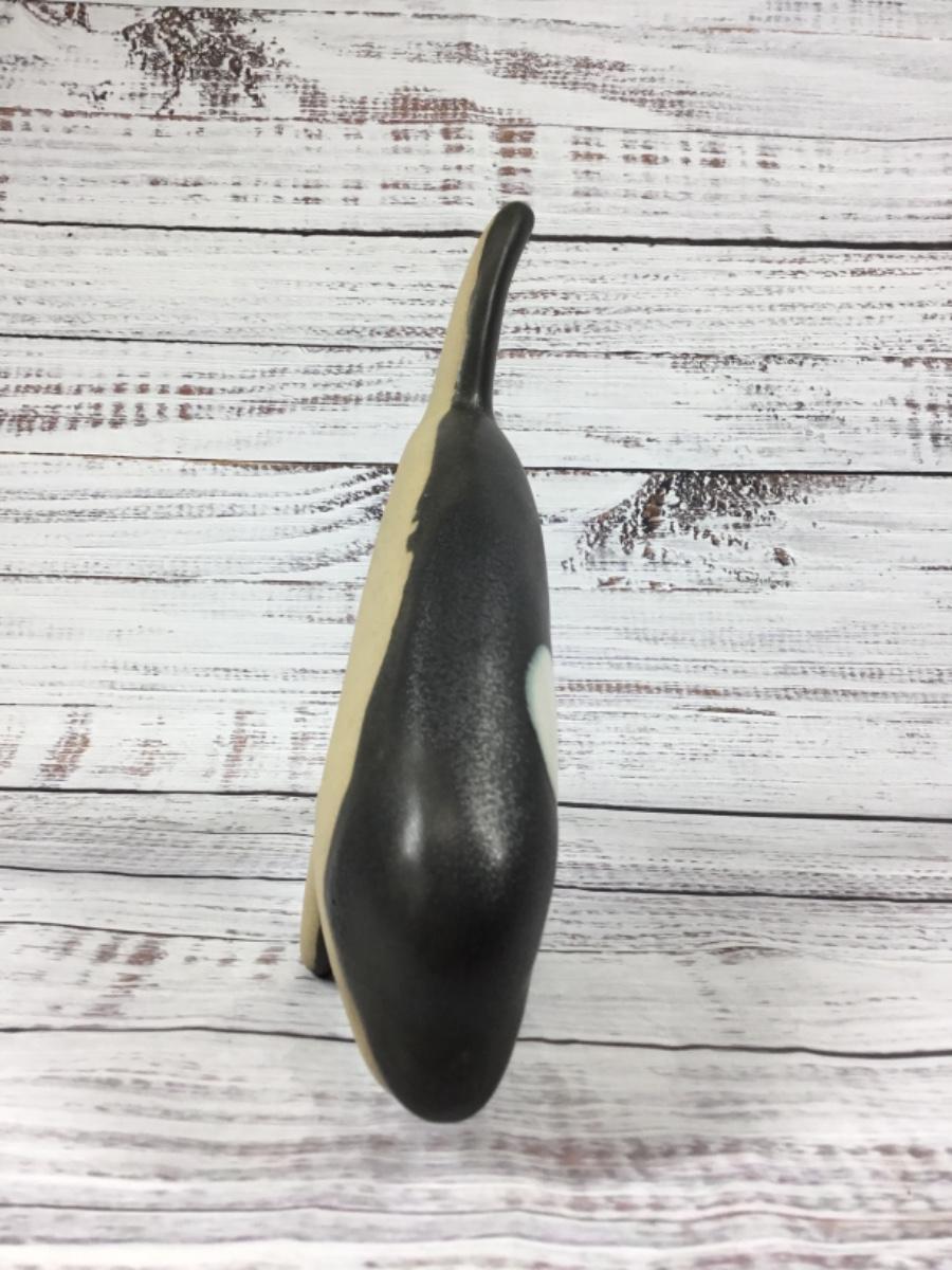 Vintage pottery killer whale wall decor. Item is about 9” tall and a little over 12” wide. The figure is in good condition but does have some crazing when closely inspected. Signed on the tail, looks like "C⭐Starr".