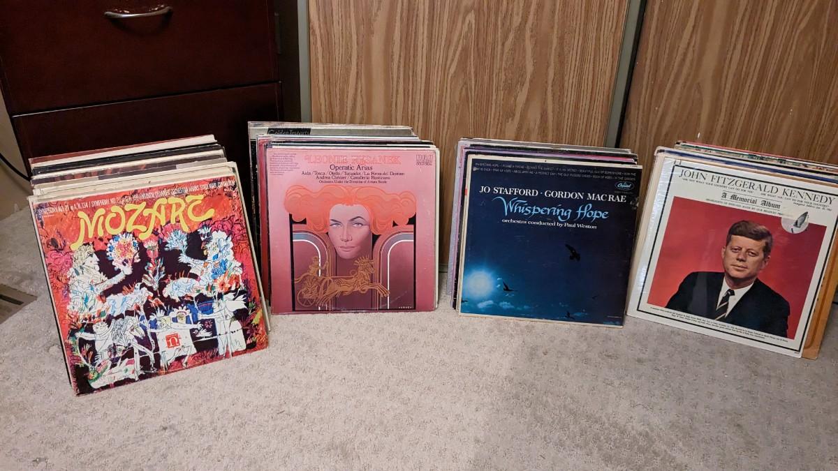 over 90 titles! This is a wonderful assortment of late 50's-late 70's albums. Varied conditions most fair to good. Includes JFK memorial album, 6 Mario Lanza titles, and just SO MUCH more! A great pickers lot. No shipping. bdrm2