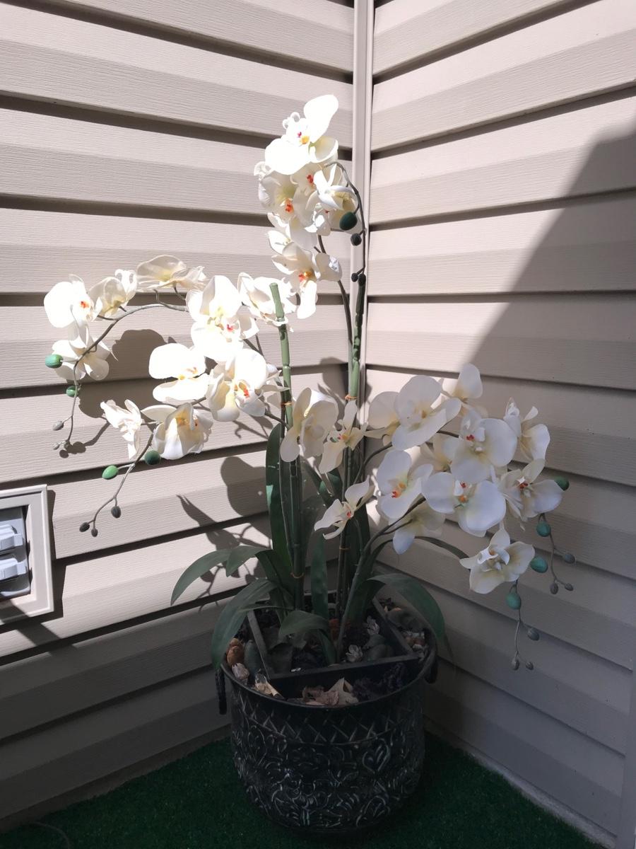 Orchid Arrangement pot 8" square x 10"h flowers 26"h (total height = 36")