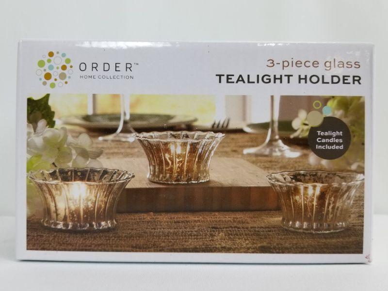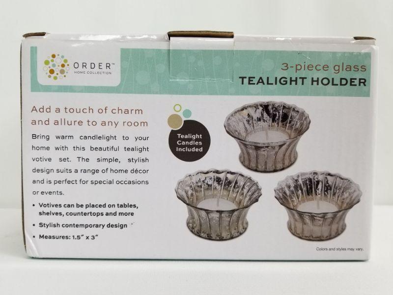 Order Home Collection 3-Piece Glass Tealight Holder Set with Tealights - Open Box