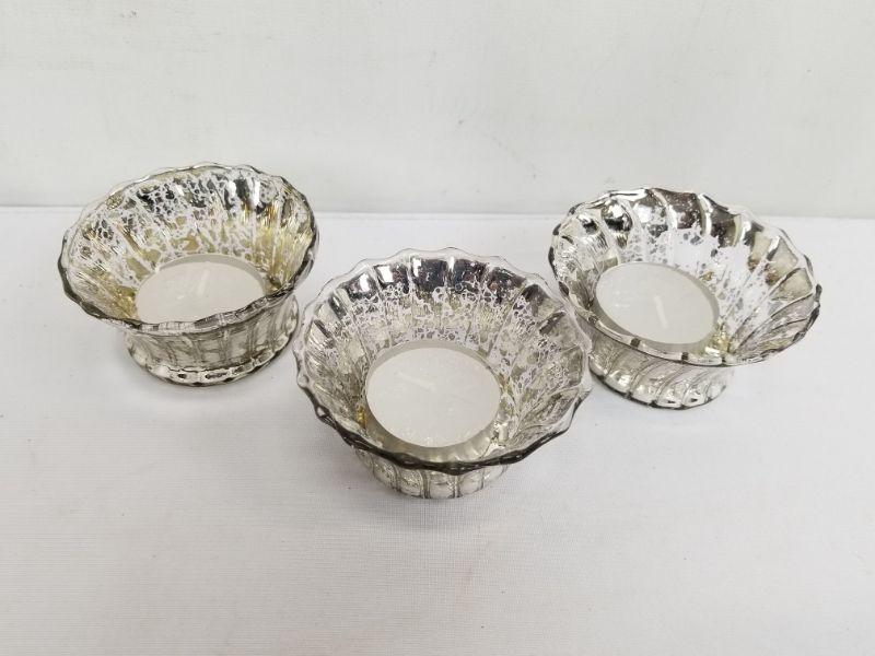 Order Home Collection 3-Piece Glass Tealight Holder Set w/ Tealights - Open Box