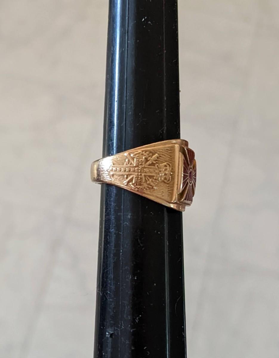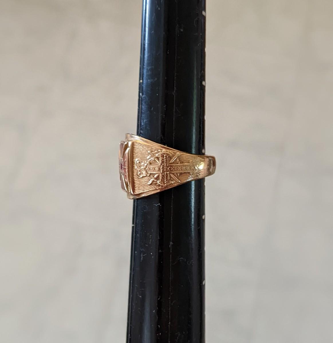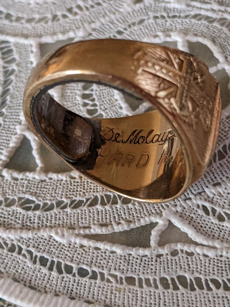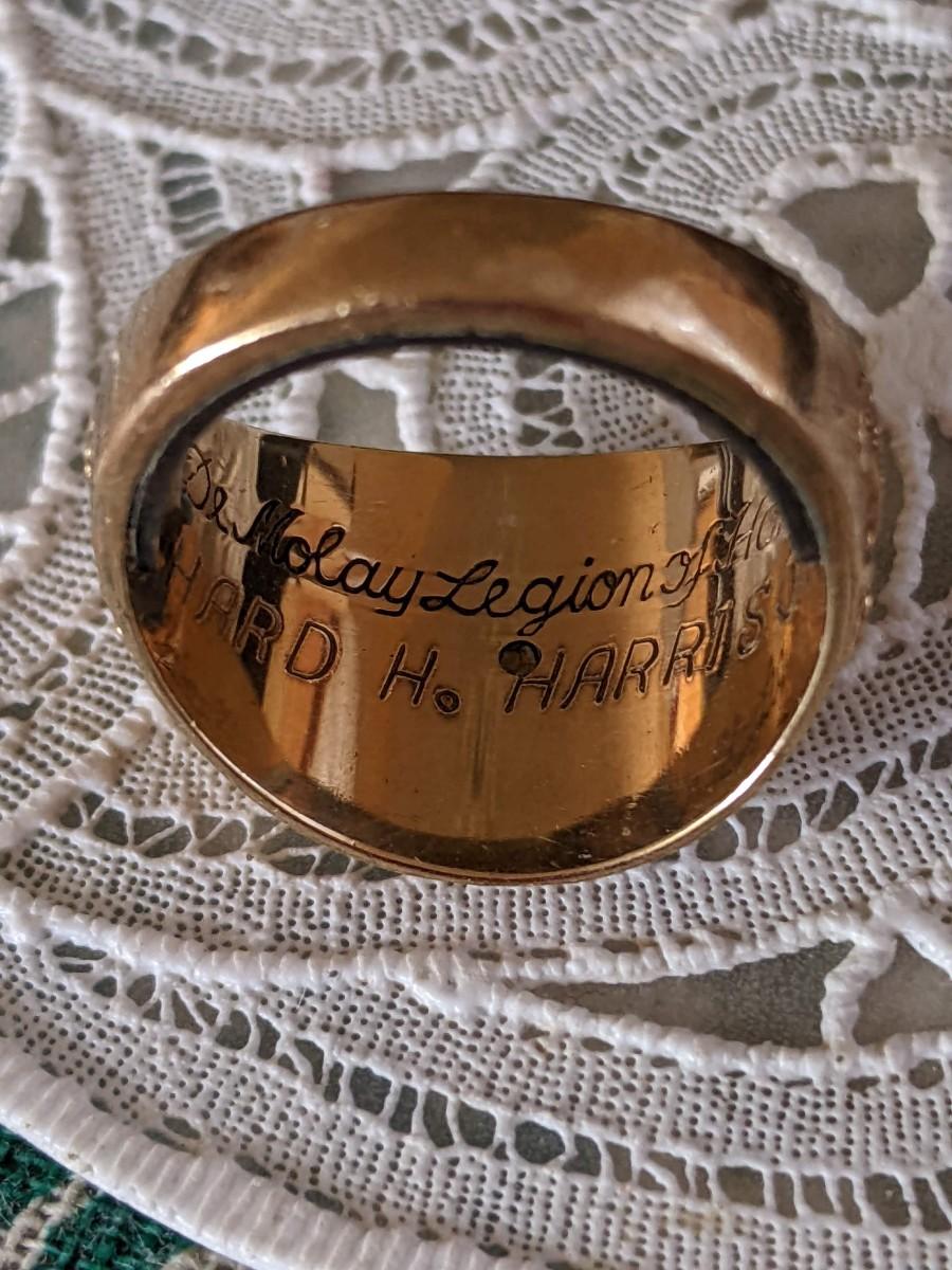 Order of De Molay Legion of Honor 10K mens pinkie ring with Card, letters and associated ephemera