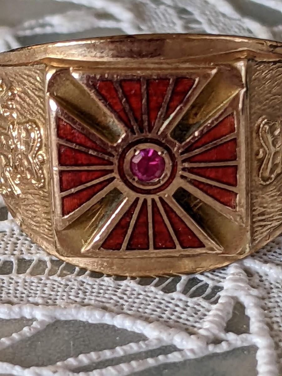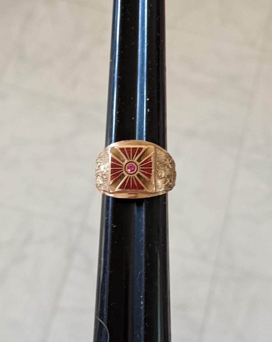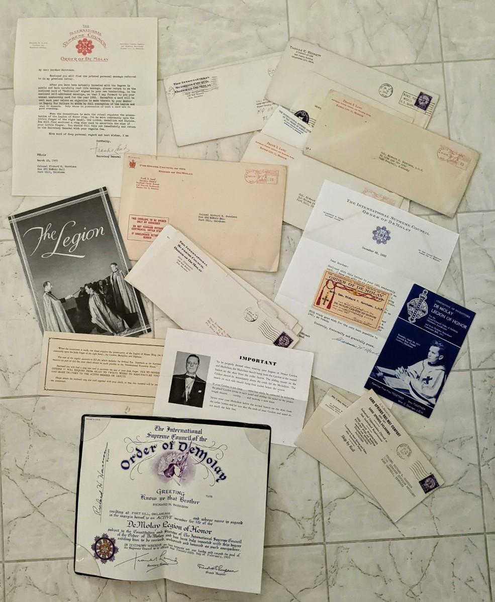 Order of De Molay Legion of Honor 10K mens pinkie ring with Card, letters and associated ephemera