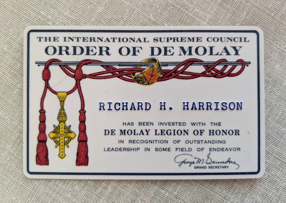 Inscribed De Molay Legion of Honor Richard H. Harrison