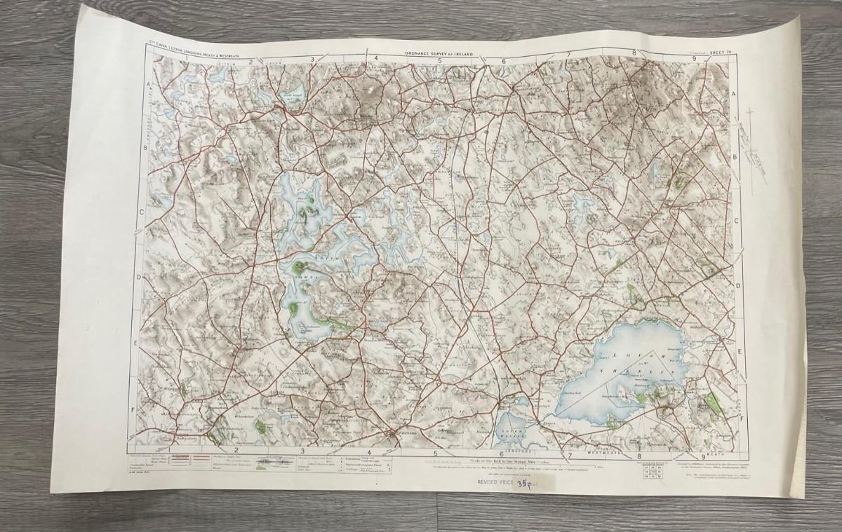 Description: ORDNANCE SURVEY OF IRELAND/ Sheet No. 79/ CAVAN, LEITRIM, LONGFORD, MEATH & WESTMEATH Revised 1899 /Published 1903 / Reproduction. Material: Linen Measurement approximate: 22 x 14 (Inches). Condition: Good